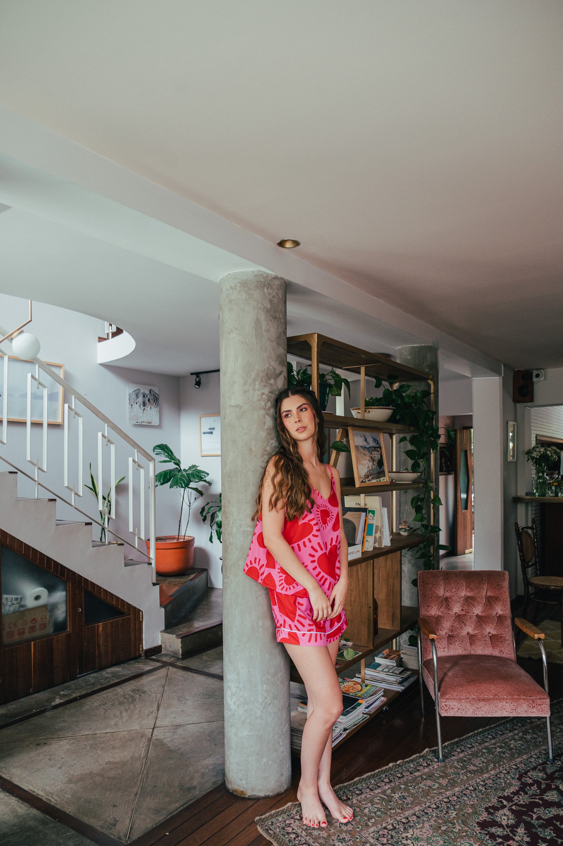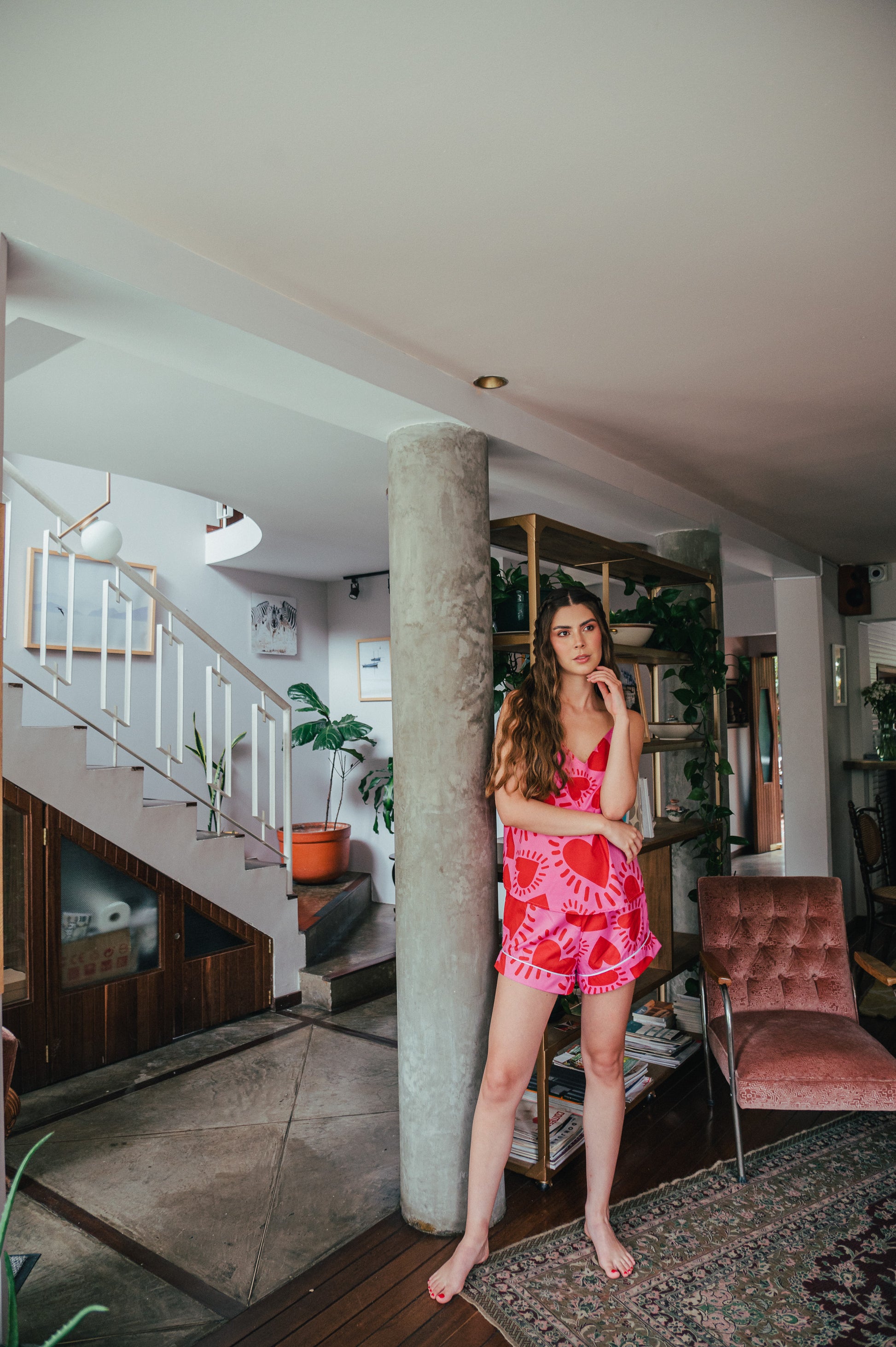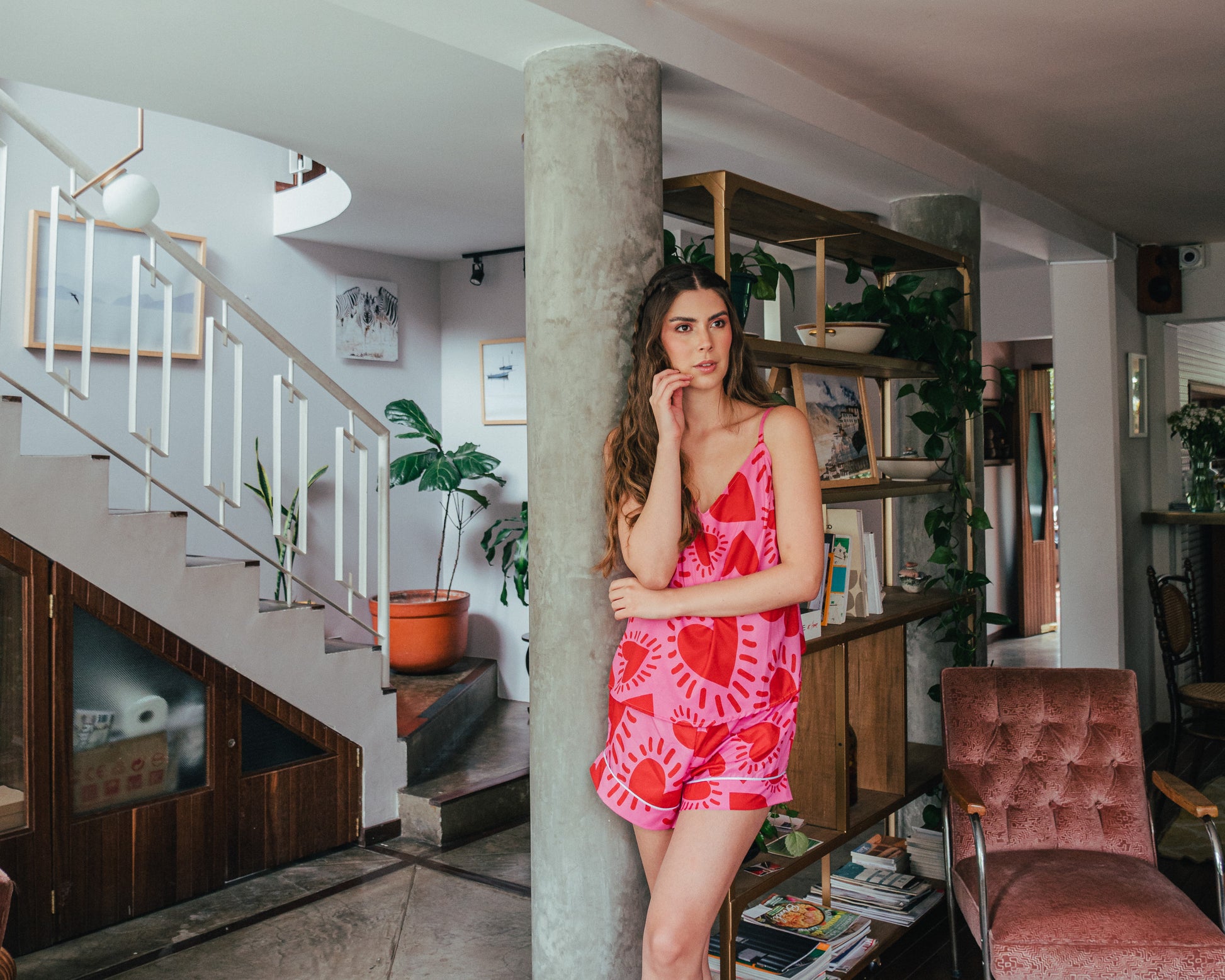 Vibra alto, sueña en rosa y descansa con actitud. Esta pijama de blusa de tiras y short en el print Amor Fucsia está pensada para mujeres que se aman a sí mismas sin medida. Su estampado de corazones en tonos intensos transmite fuerza, feminidad y alegría, mientras su diseño ligero y fresco te brinda comodidad absoluta. Perfecta para regalarte momentos de autocuidado con estilo y recordarte que el amor propio también se viste bonito. 💖
