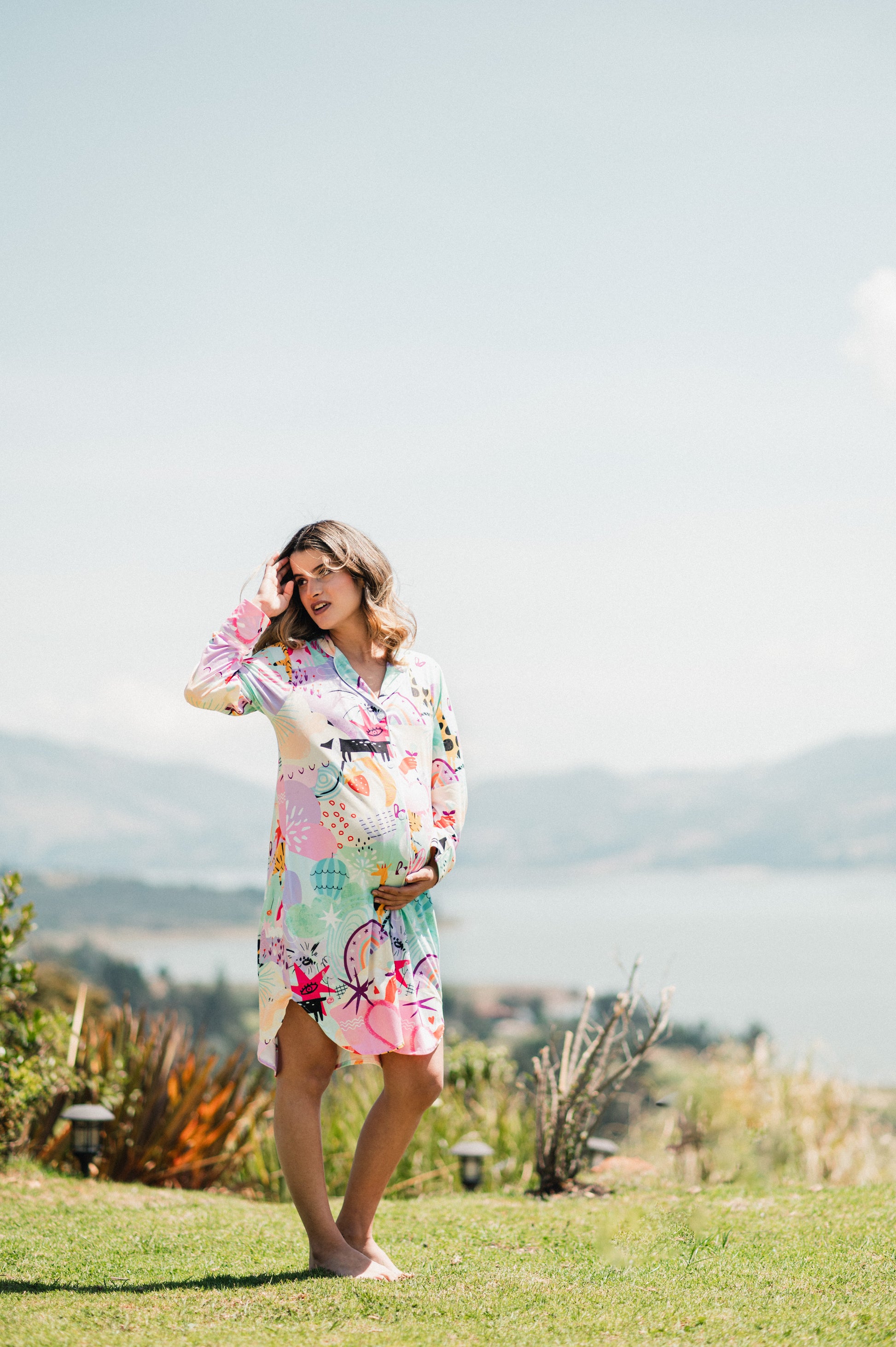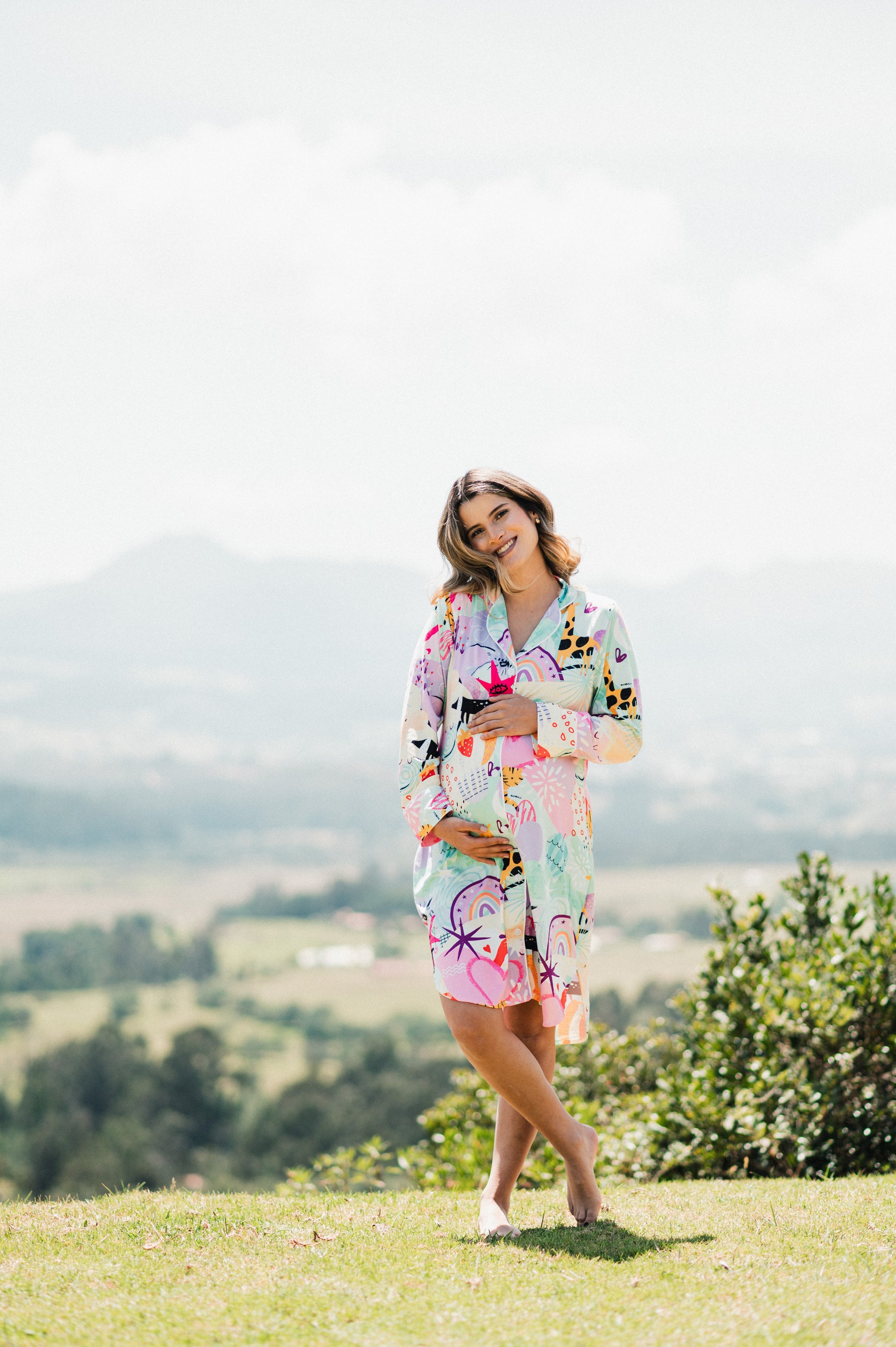Lleva la magia de los sueños a tu descanso con el camisón Fantasia de manga larga para maternidad. Su diseño encantador, repleto de elementos fantásticos, te envuelve en una atmósfera de calma y creatividad. La tela suave y ligera garantiza comodidad máxima, ideal para esas noches donde el confort es clave. Un must para futuras mamás que desean combinar estilo y bienestar.