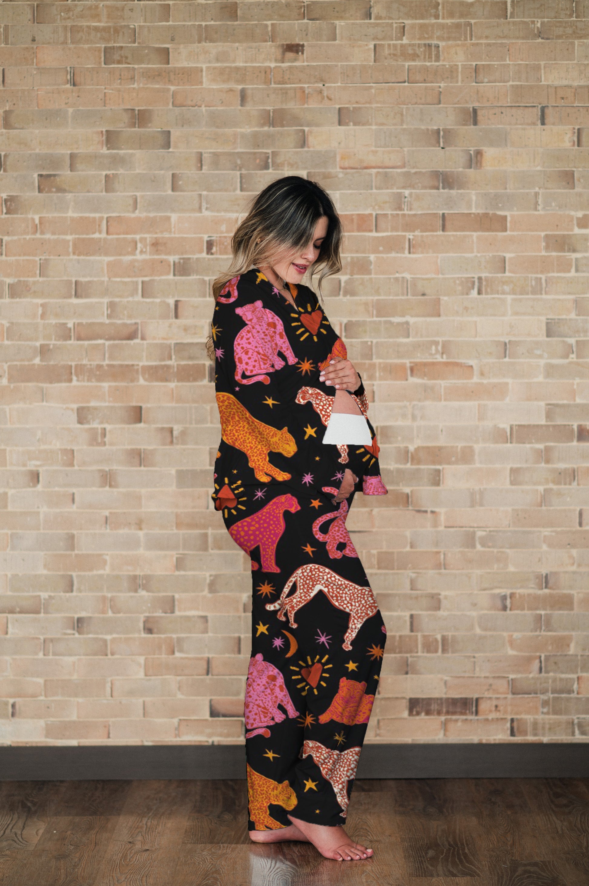 Para las mamás que buscan sofisticación y confort, la pijama Fantasia Felina Negro es la opción perfecta. Este diseño elegante combina un estampado felino moderno y discreto con la suavidad y elasticidad de los tejidos pensados para la maternidad. La camisa de manga larga y el pantalón ofrecen un ajuste perfecto que acompaña los cambios de tu cuerpo sin restricciones, brindándote una sensación de comodidad inigualable durante el día y la noche.