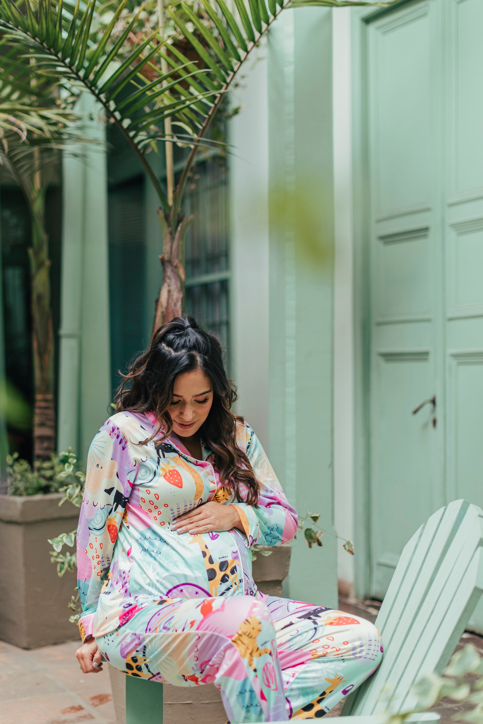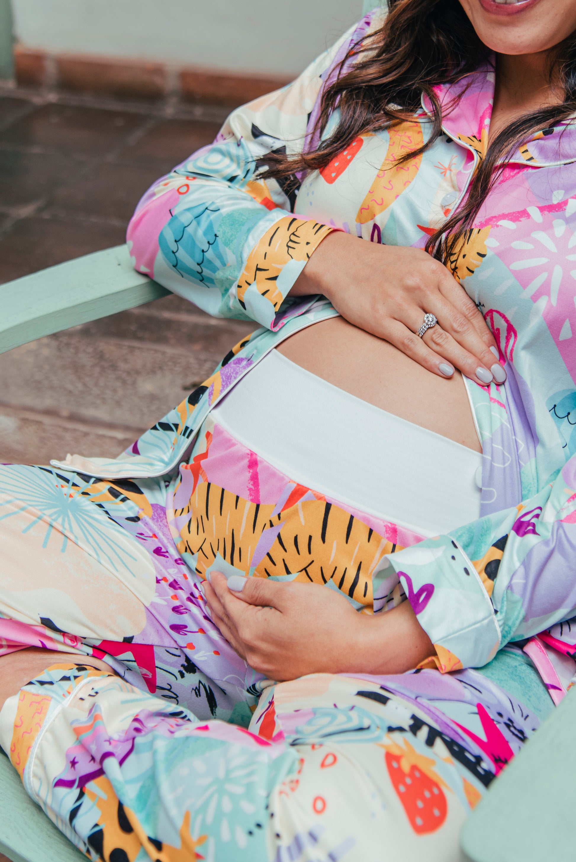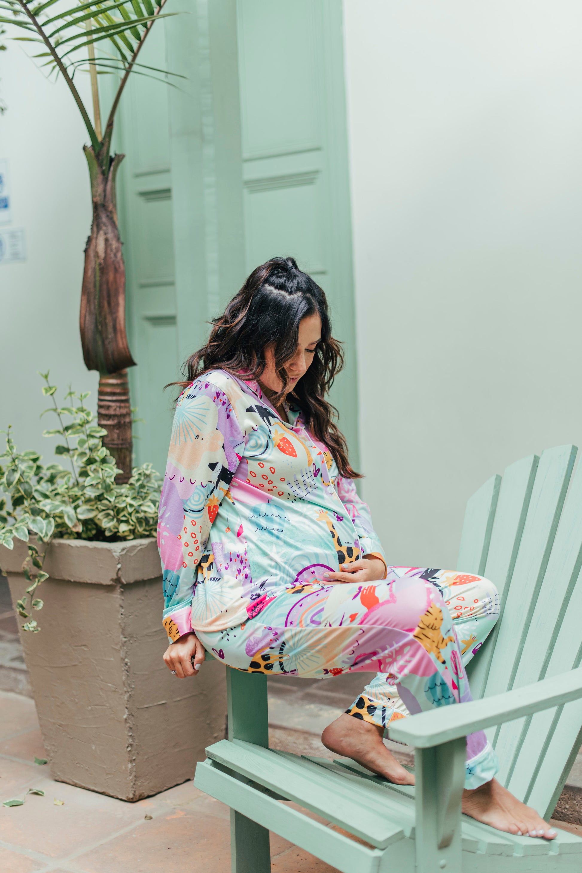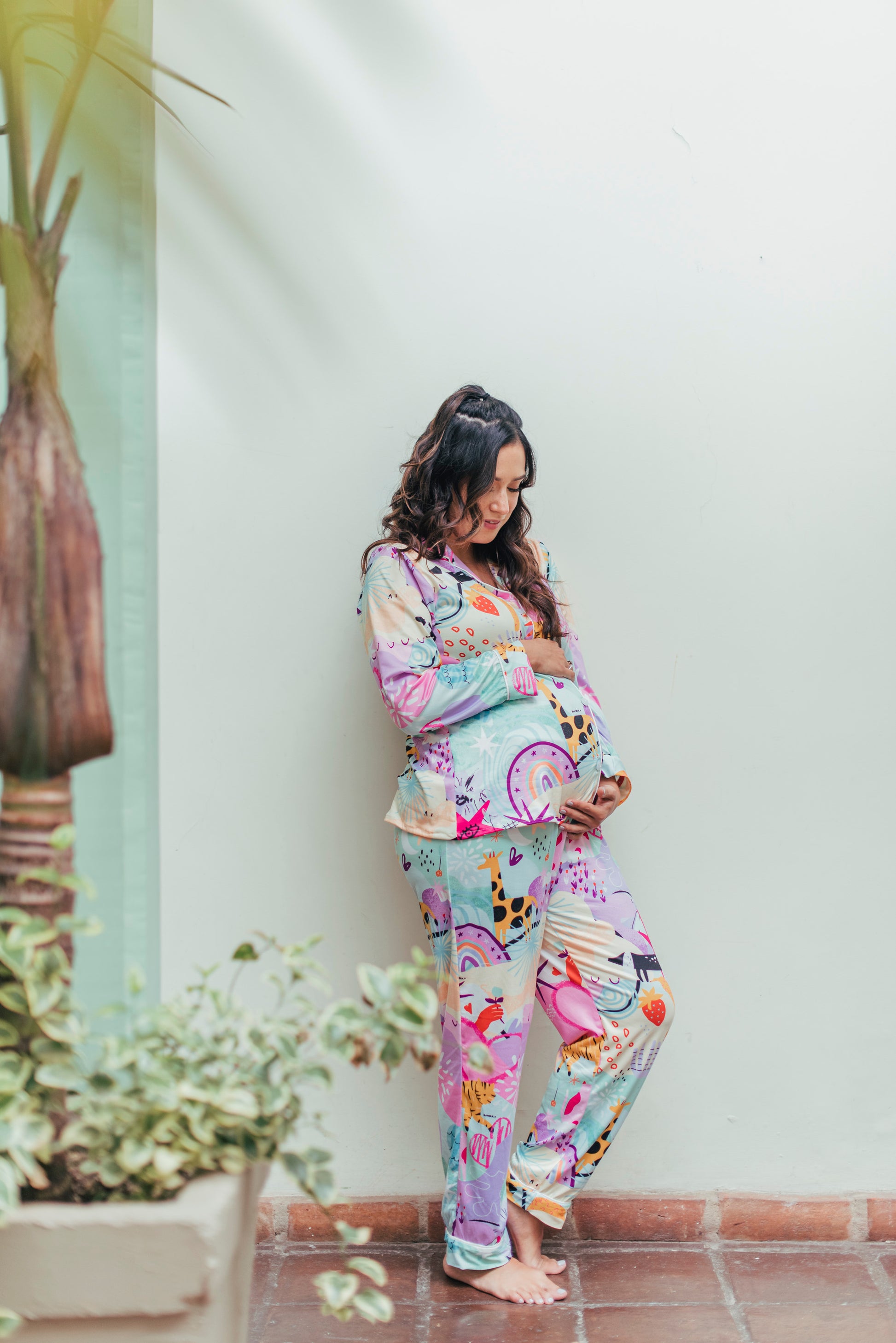 Colorida, alegre y llena de energía positiva, nuestra pijama de maternidad camisa y pantalón en el print Fantasía está diseñada para iluminar tus días con comodidad y estilo durante el embarazo y la lactancia. Su estampado vibrante con íconos mágicos y mensajes inspiradores te recuerda que esta etapa está llena de fuerza, amor y transformación.