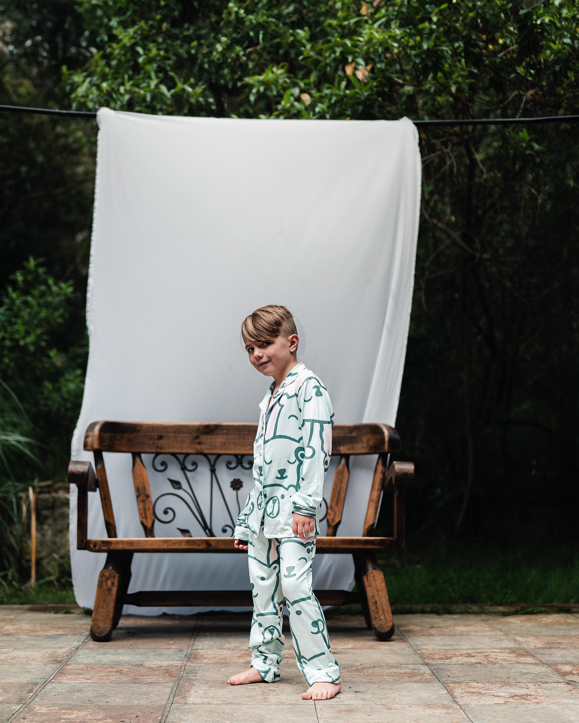 Una pijama diseñada para los pequeños aventureros que aman la comodidad y el estilo. El set Green Bear combina una camisa fresca y un pantalón suave con un divertido estampado de ositos verdes que encantarán a tus hijos. Perfecta para noches de juego y descanso, esta pijama ofrece libertad de movimiento y una textura delicada para cuidar la piel sensible de los niños.