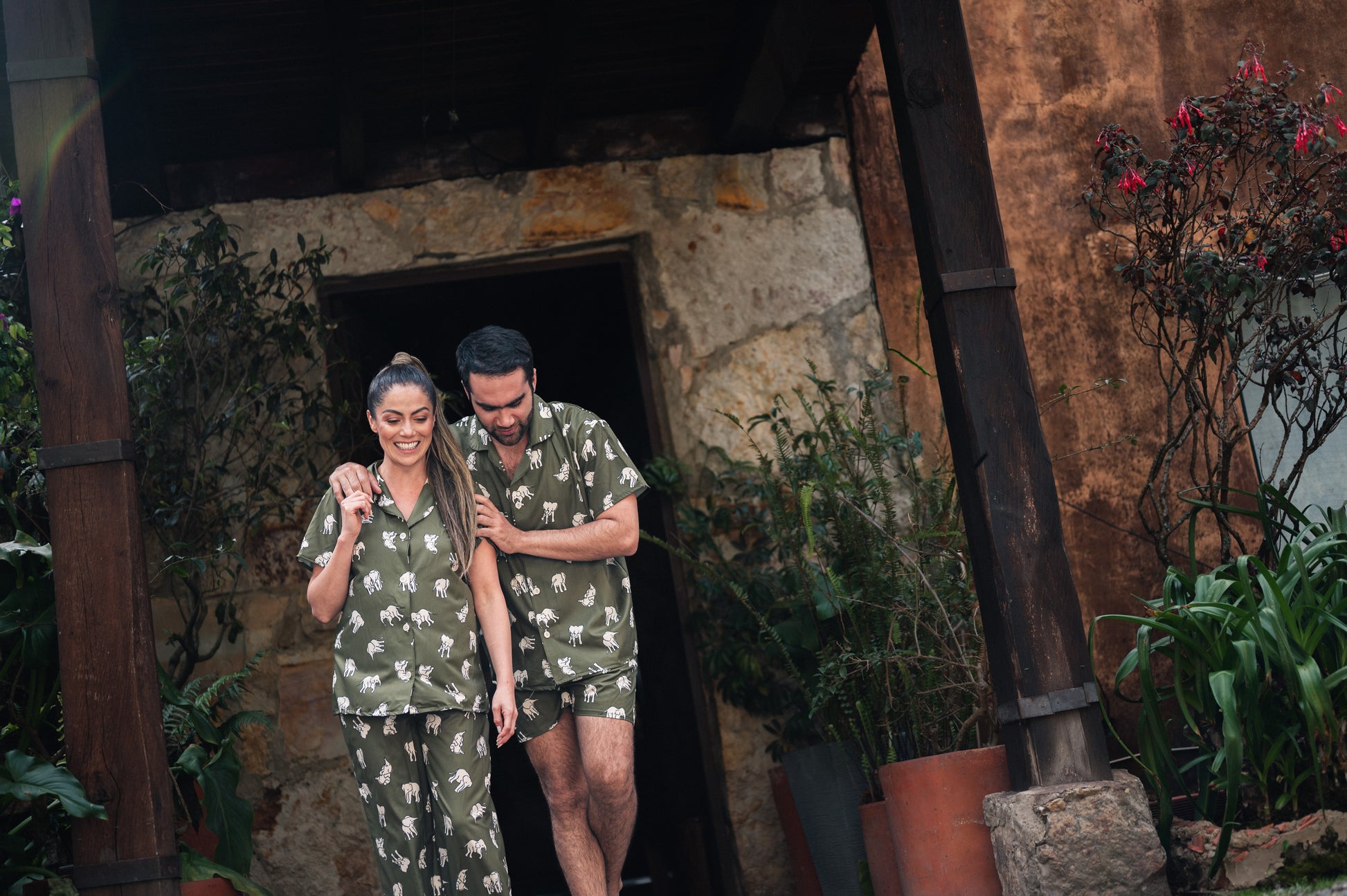 Prepárate para dormir con estilo con nuestra pijama de camisa manga corta y short en el encantador print Green Elephants. Esta pijama combina comodidad y originalidad, ideal para quienes aman los diseños únicos con un toque de ternura salvaje.