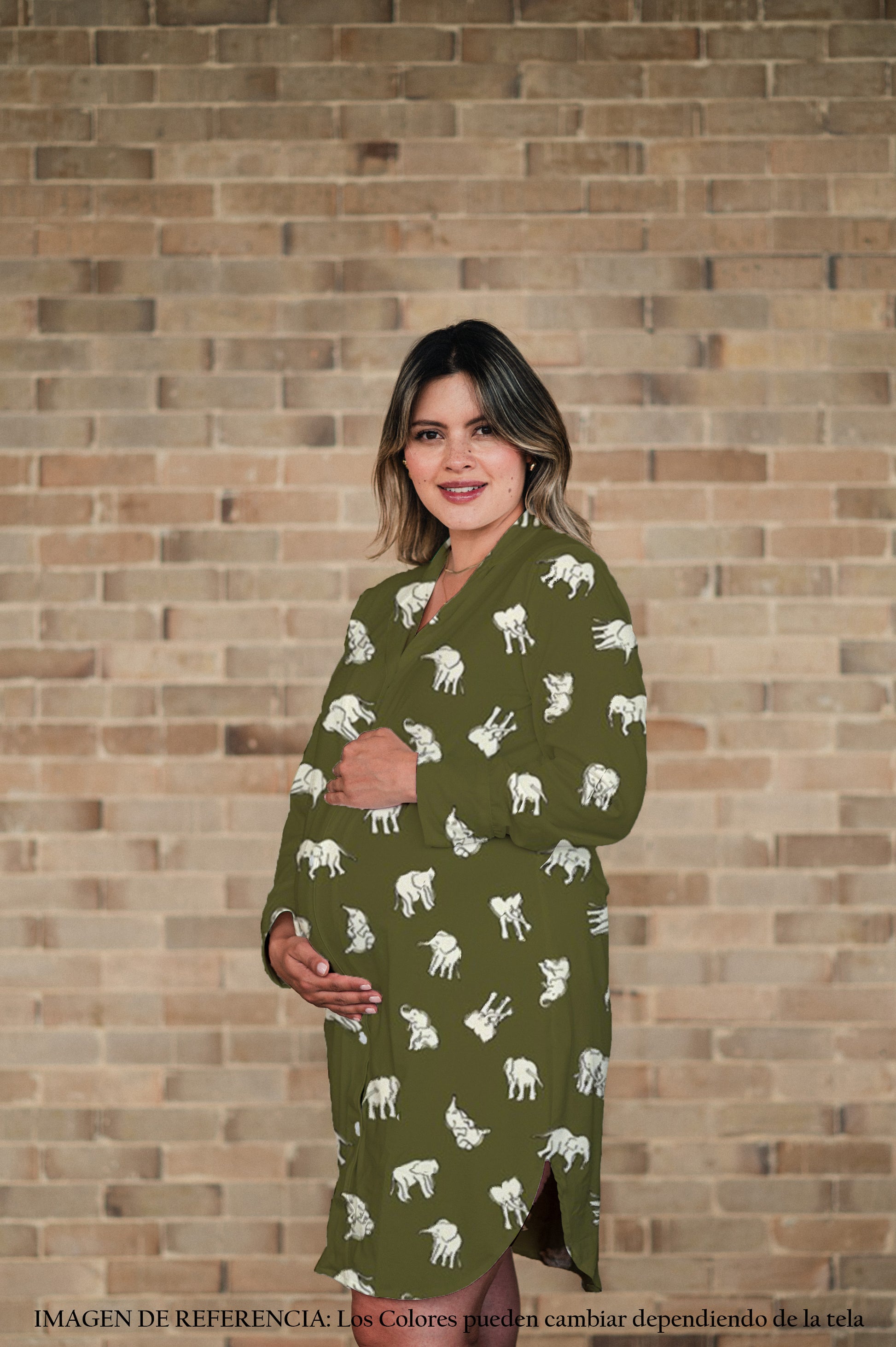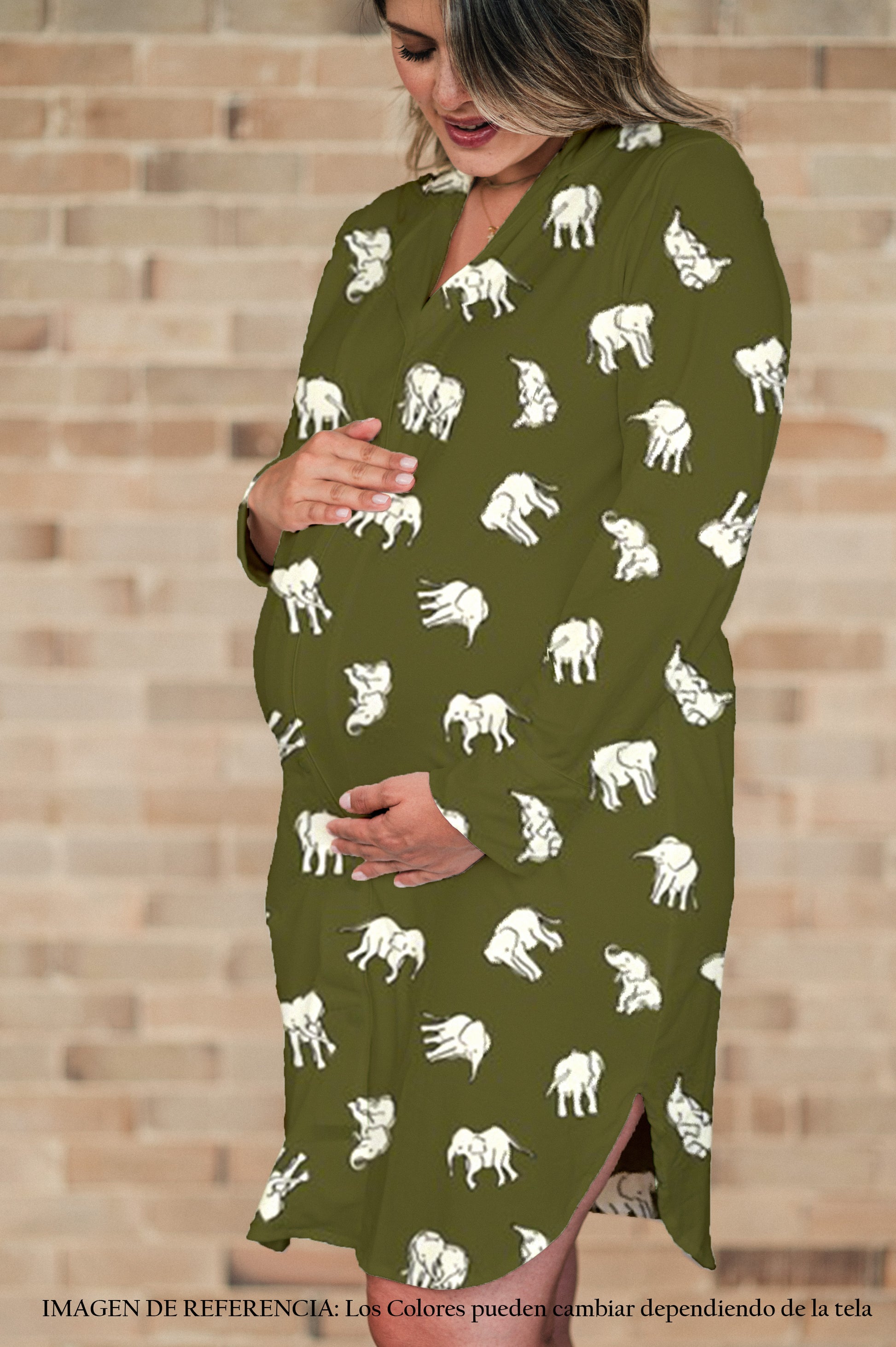 Sumérgete en un descanso lleno de frescura y estilo con nuestro camisón “Green Elephants”. Su diseño encantador con elefantes en tonos verdes ofrece una conexión con la naturaleza, mientras que la tela suave y elástica brinda máxima comodidad para el cuerpo cambiante de la mamá. Perfecto para noches largas y momentos de relax con un toque de personalidad única.
