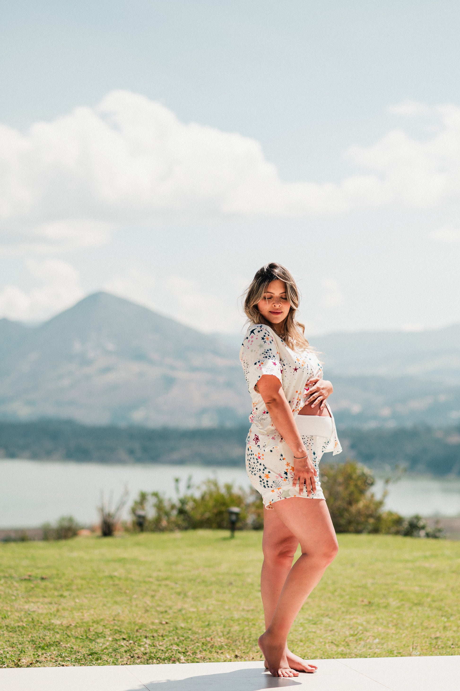 Confeccionada en telas suaves que miman tu piel, el short incluye una pretina elástica que se adapta con delicadeza a tu barriguita, y la camisa de manga corta te ofrece frescura y libertad 🌌🤰. Perfecta para sentirte cómoda, linda y rodeada de estrellas mientras esperas a tu bebé.