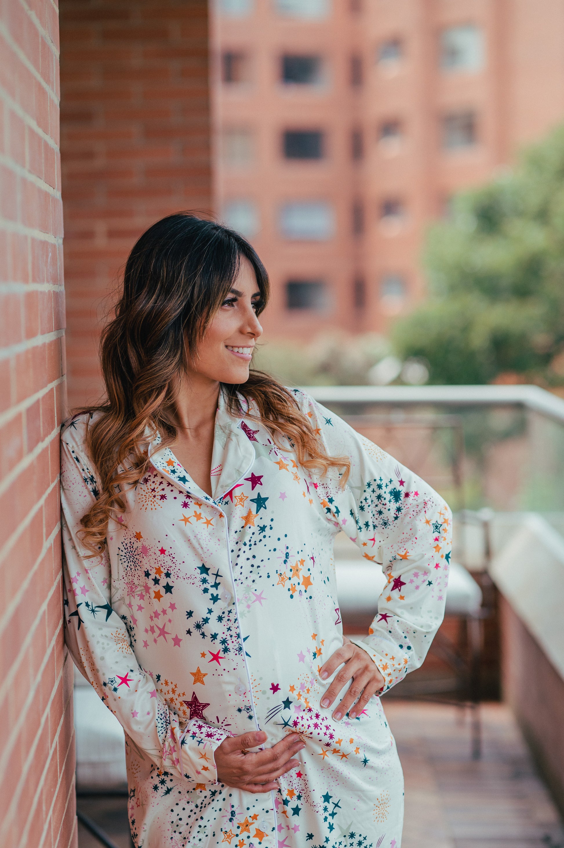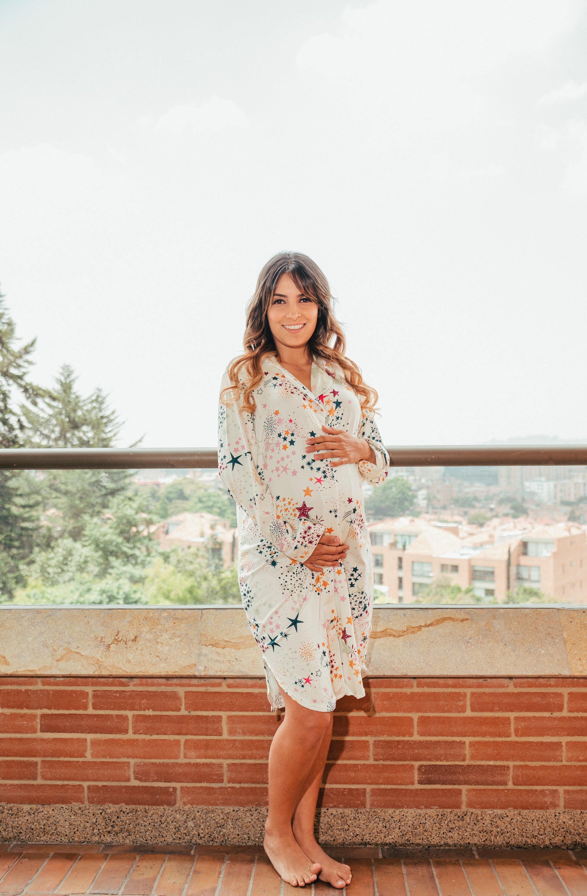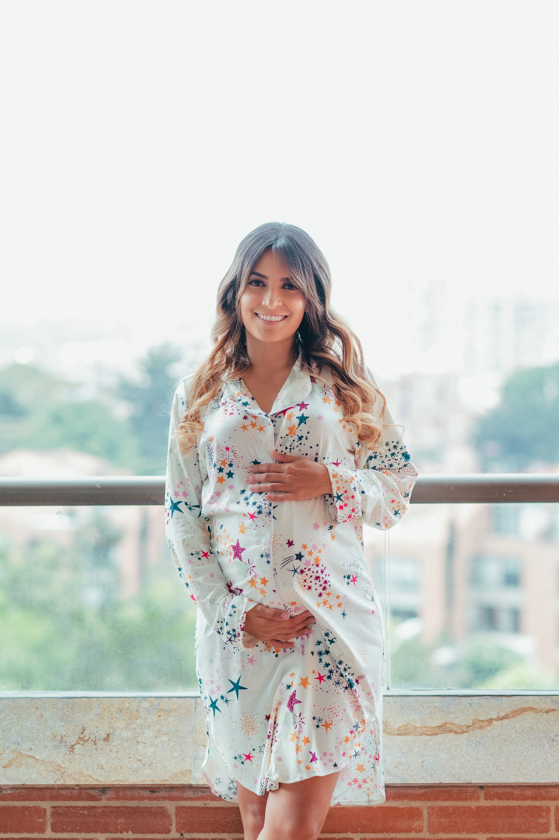 Deja que las estrellas iluminen tus noches con el camisón de maternidad Lluvia de Estrellas. Su diseño elegante y femenino presenta un estampado de pequeñas estrellas que aportan un toque de magia y tranquilidad. Perfecto para abrigarte durante las horas de sueño sin renunciar a un look sofisticado y delicado. La suavidad de la tela se adapta a tu cuerpo con cariño y flexibilidad.
