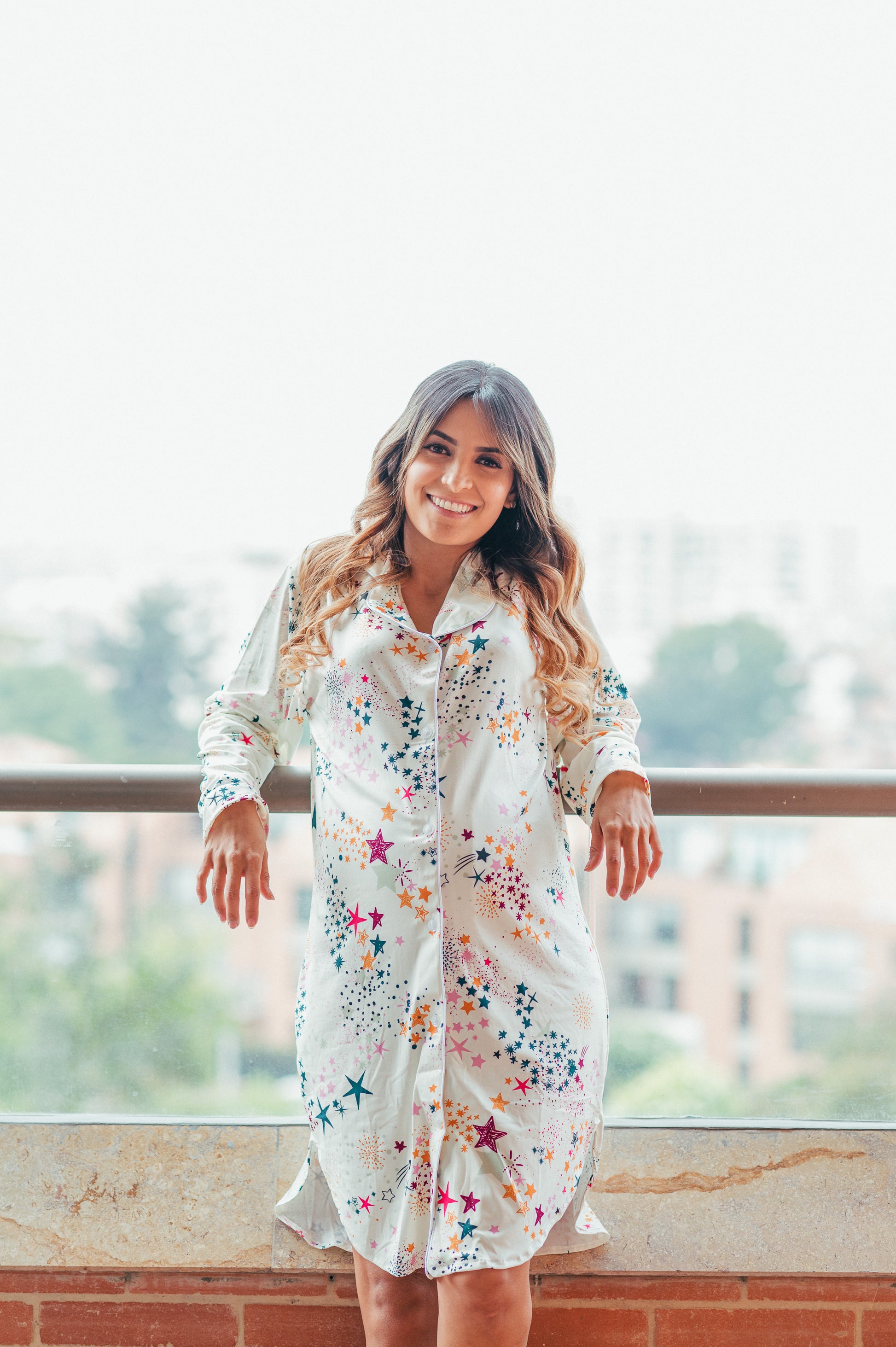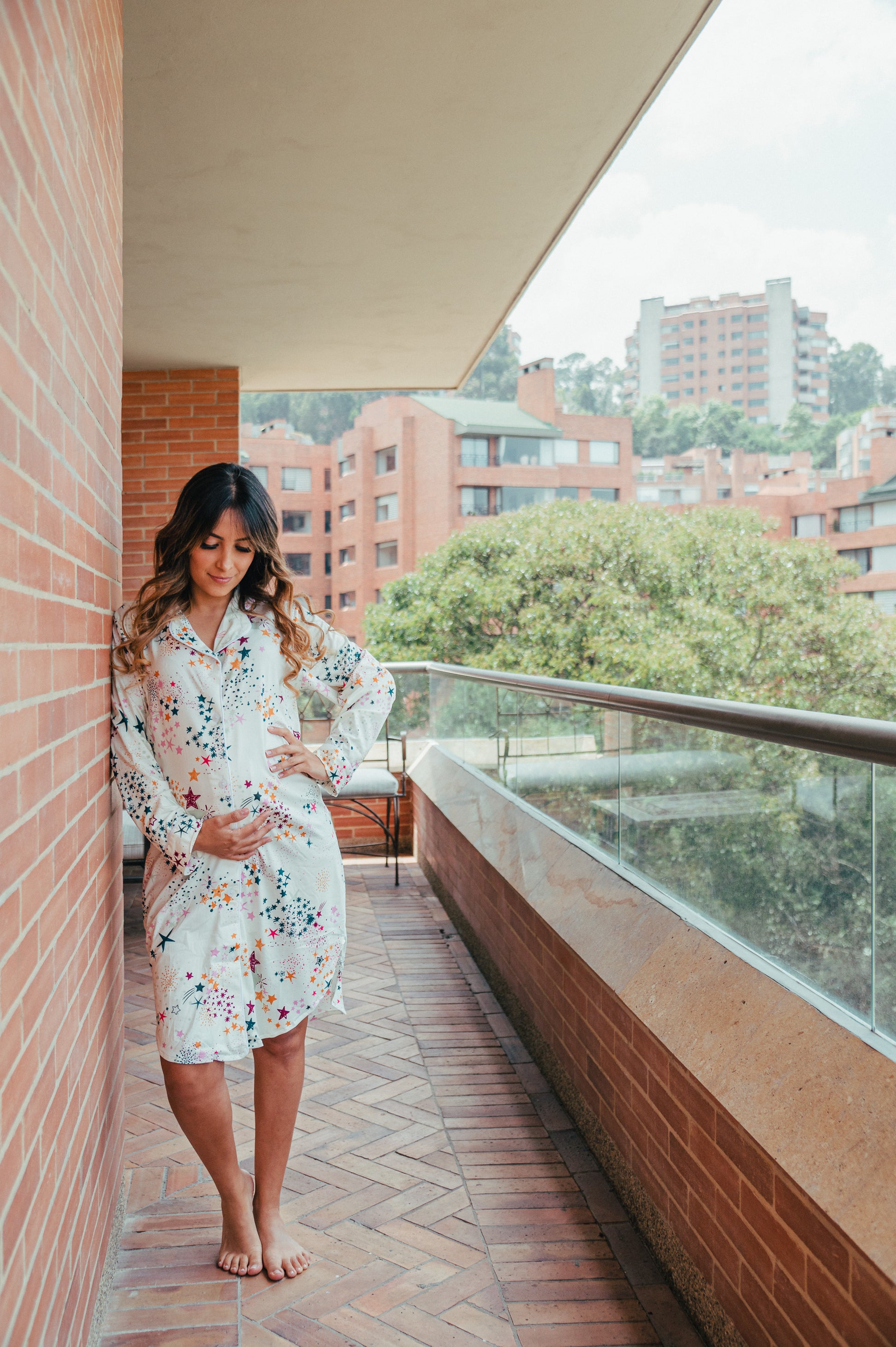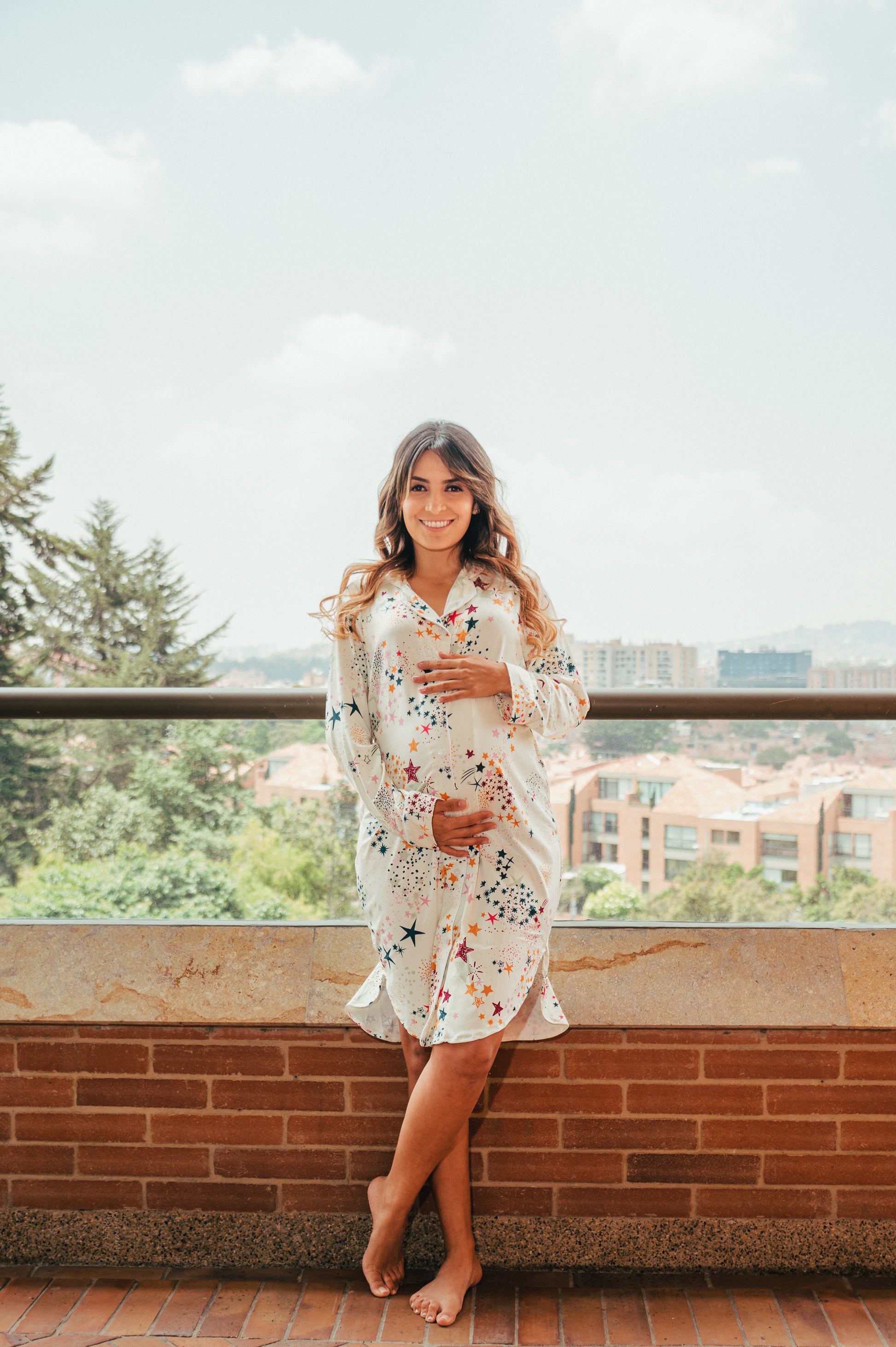 Deja que las estrellas iluminen tus noches con el camisón de maternidad Lluvia de Estrellas. Su diseño elegante y femenino presenta un estampado de pequeñas estrellas que aportan un toque de magia y tranquilidad. Perfecto para abrigarte durante las horas de sueño sin renunciar a un look sofisticado y delicado. La suavidad de la tela se adapta a tu cuerpo con cariño y flexibilidad.