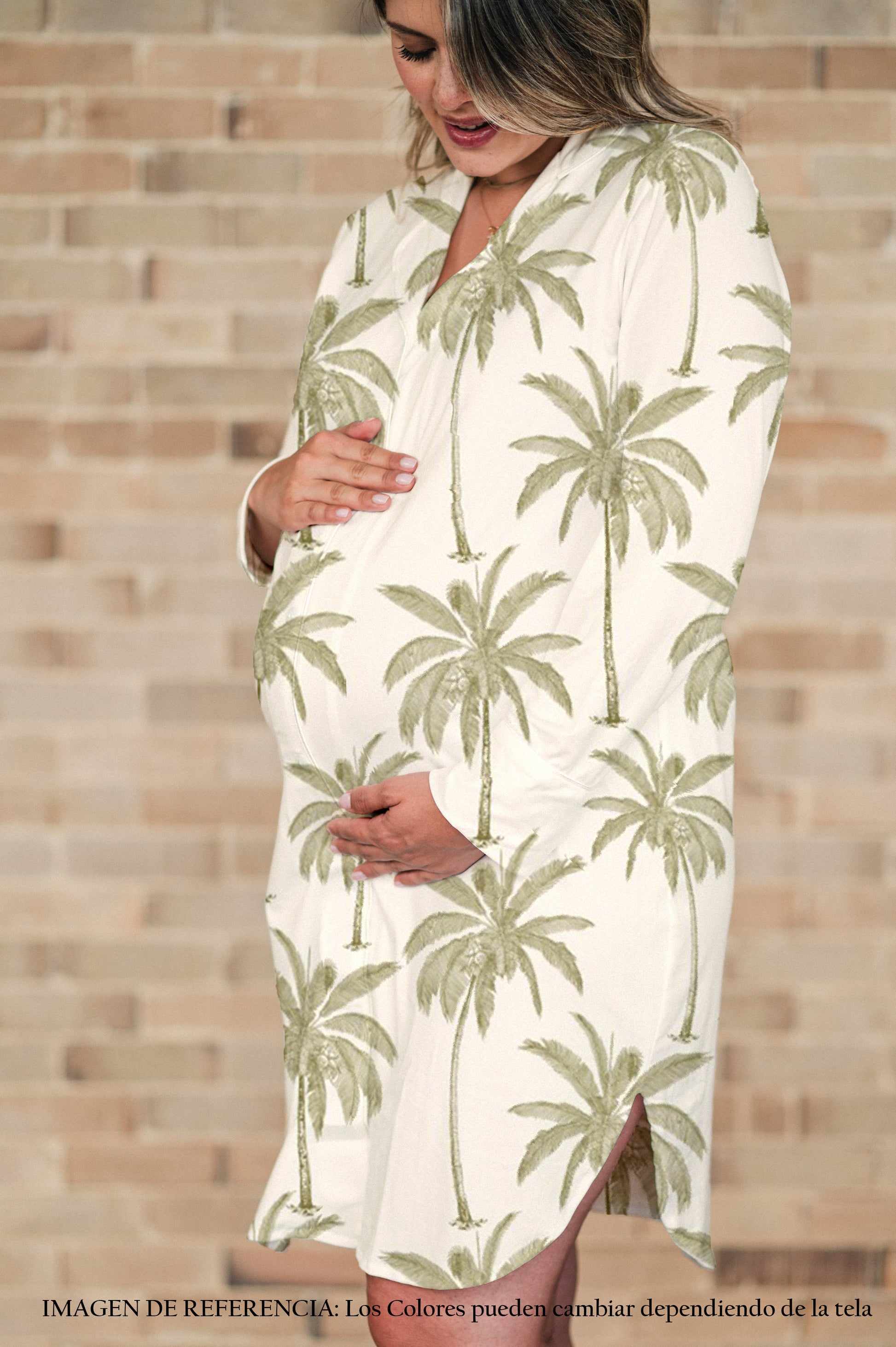 Su diseño tipo camisón permite total libertad de movimiento y una caída ligera sobre tu cuerpo, mientras su apertura funcional facilita la lactancia de manera práctica y discreta. Además, es ideal para la clínica o para tu parto, acompañándote con comodidad en uno de los momentos más importantes.