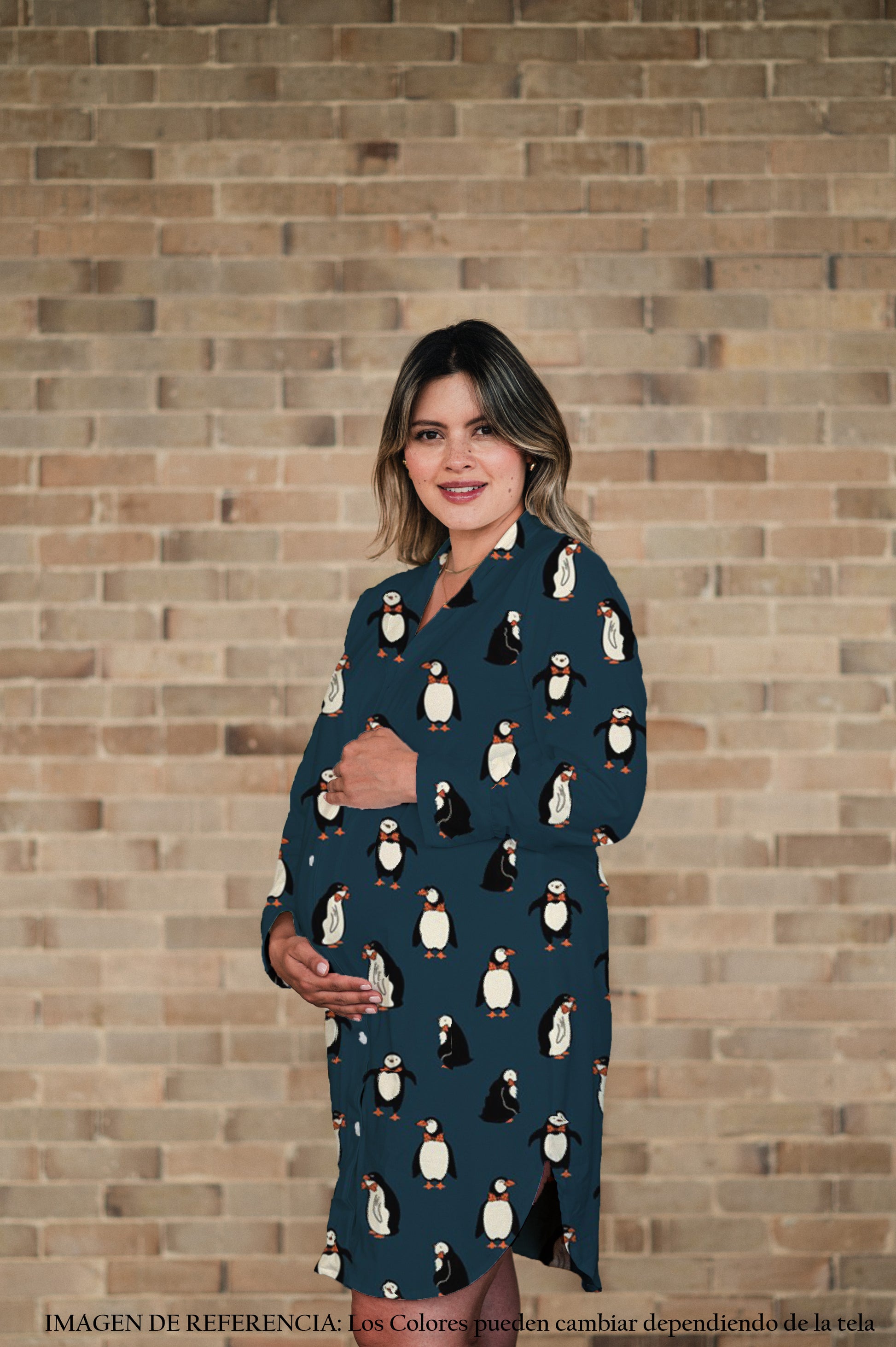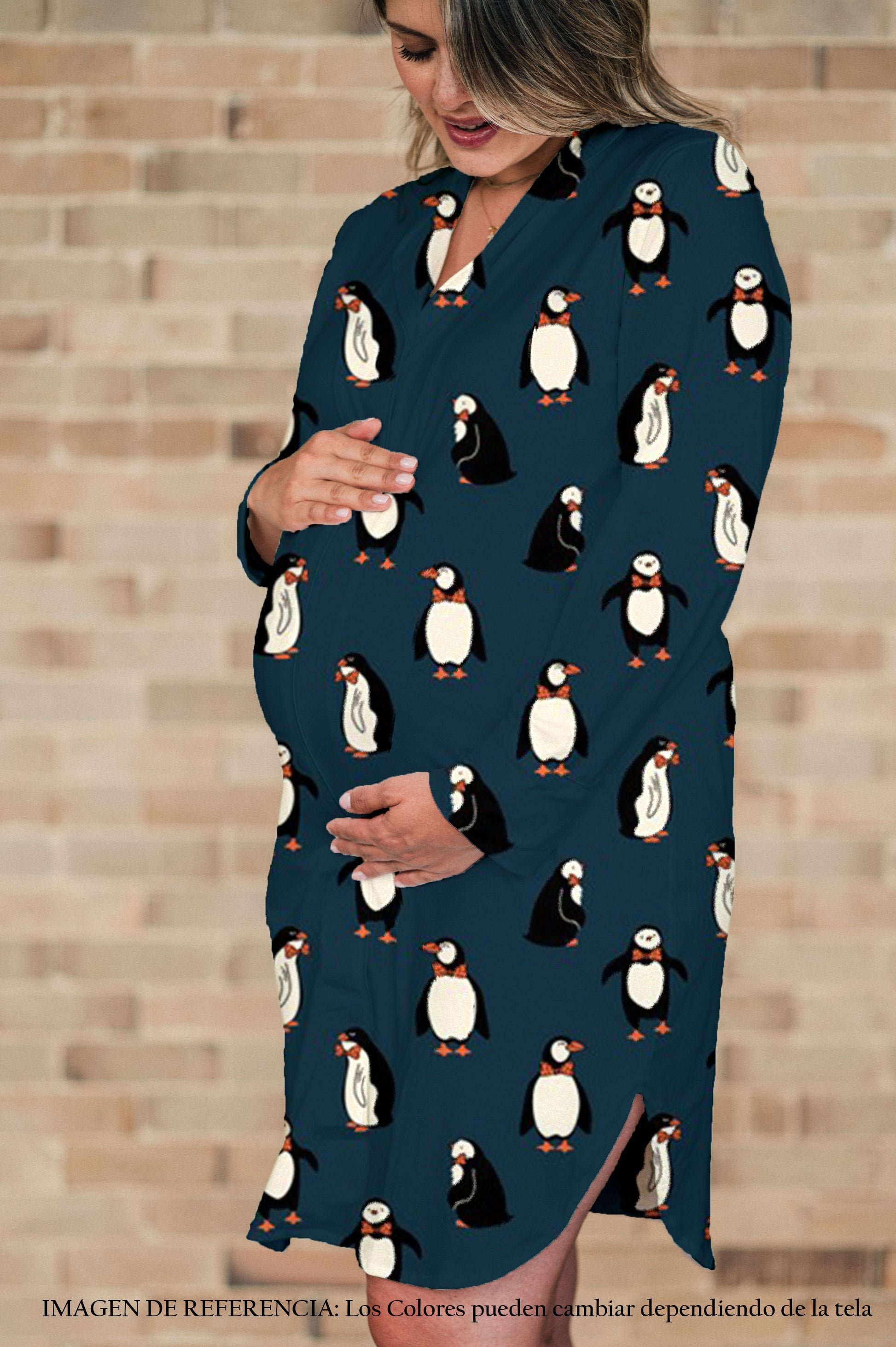 Sumérgete en la ternura y el confort con nuestro camisón de maternidad Pinguinos Azul Oscuro. Su diseño único con estampado de adorables pingüinos sobre fondo azul profundo ofrece un toque divertido y acogedor. La manga larga proporciona protección y suavidad para que te sientas mimada toda la noche. Perfecto para mamás que desean lucir hermosa mientras descansan placenteramente.