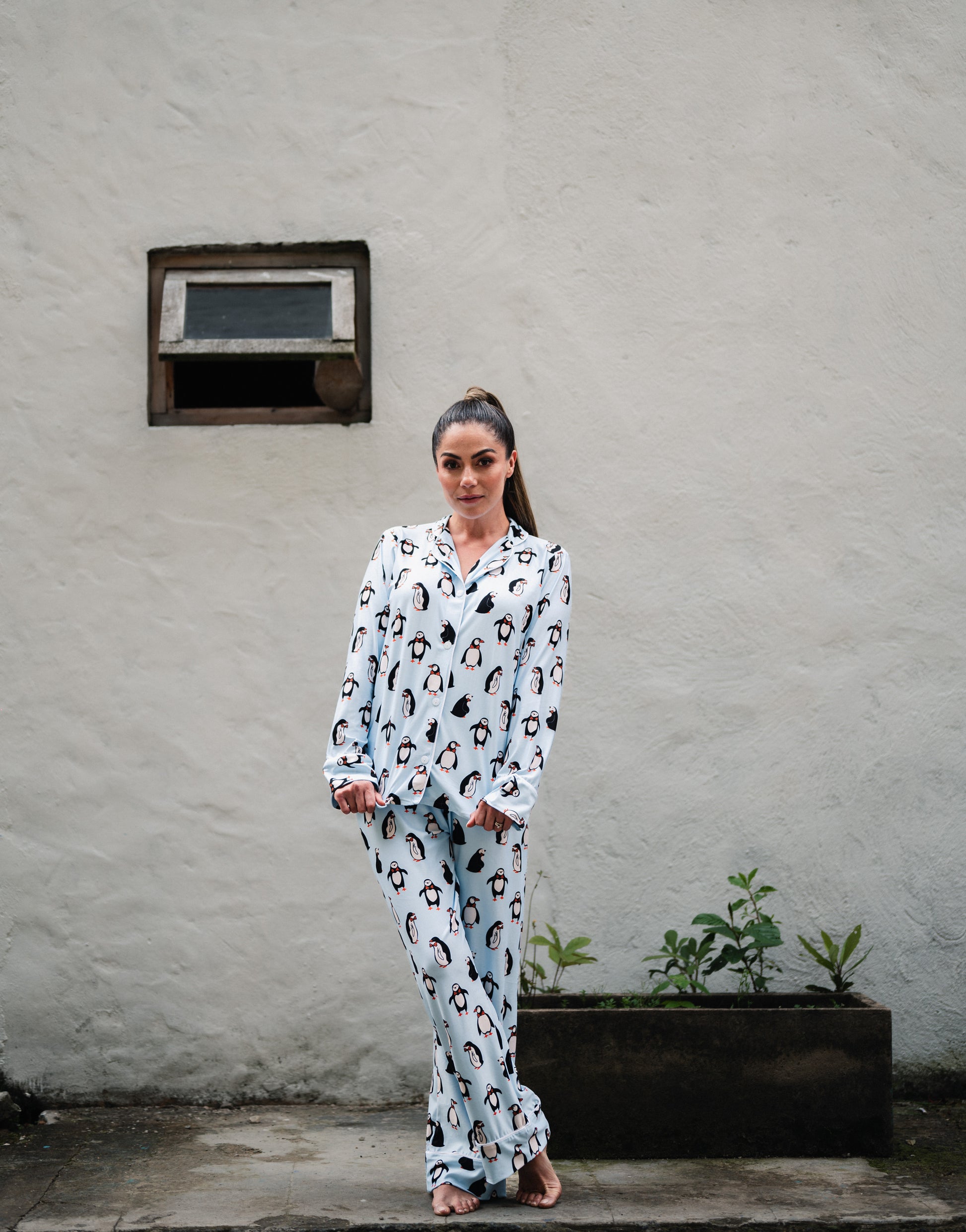 Dale un toque de ternura y diversión a tus noches con nuestra pijama Pingüinos Celeste. Su encantador estampado de pequeños pingüinos sobre fondo azul claro evoca frescura, dulzura y alegría, perfecto para quienes disfrutan los detalles que despiertan sonrisas. Esta pijama combina estilo y comodidad para que te sientas linda, libre y relajada desde que amanece hasta que anochece.