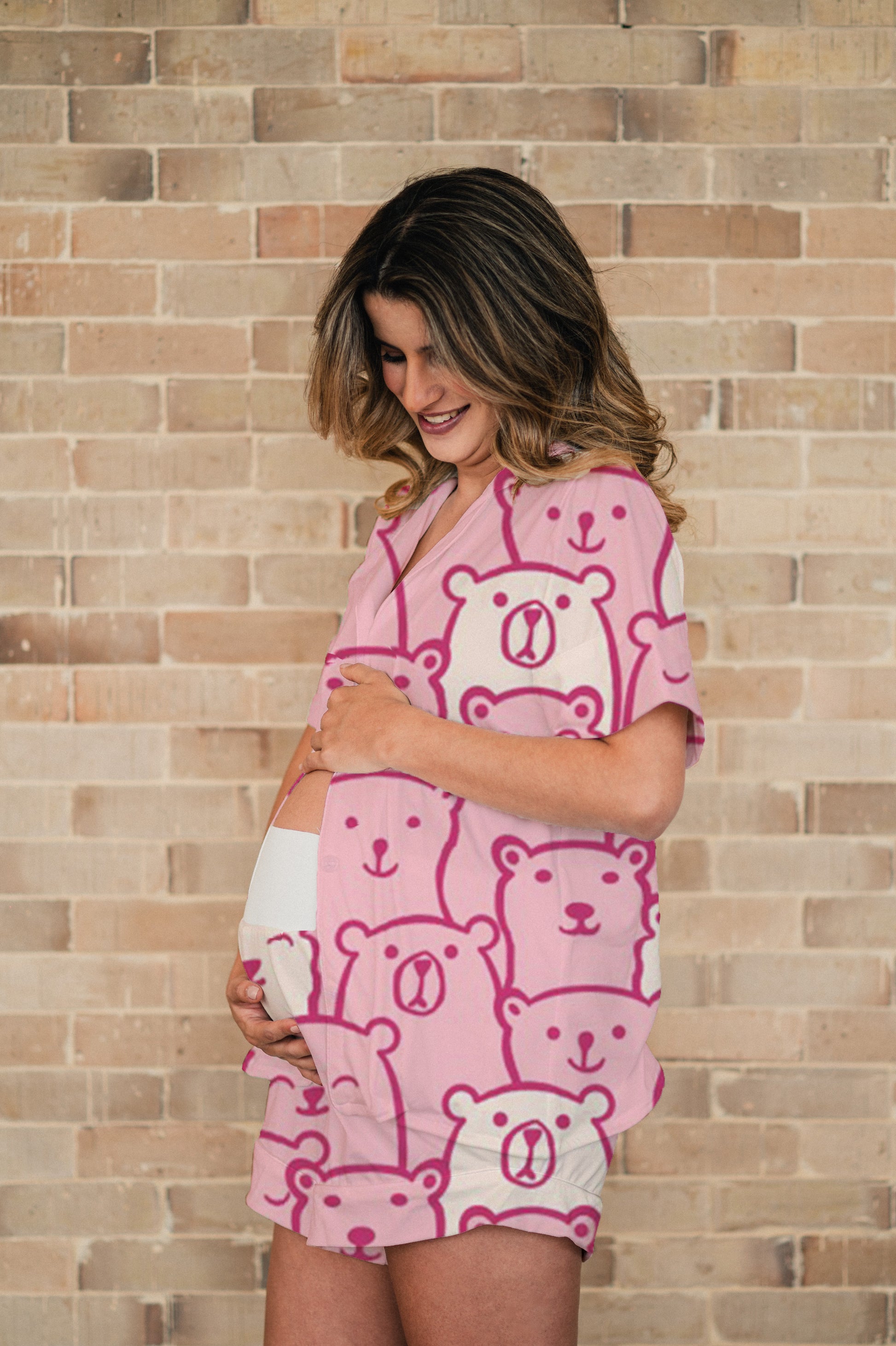 Pink Bear - Camisa Manga Corta y Short Maternidad