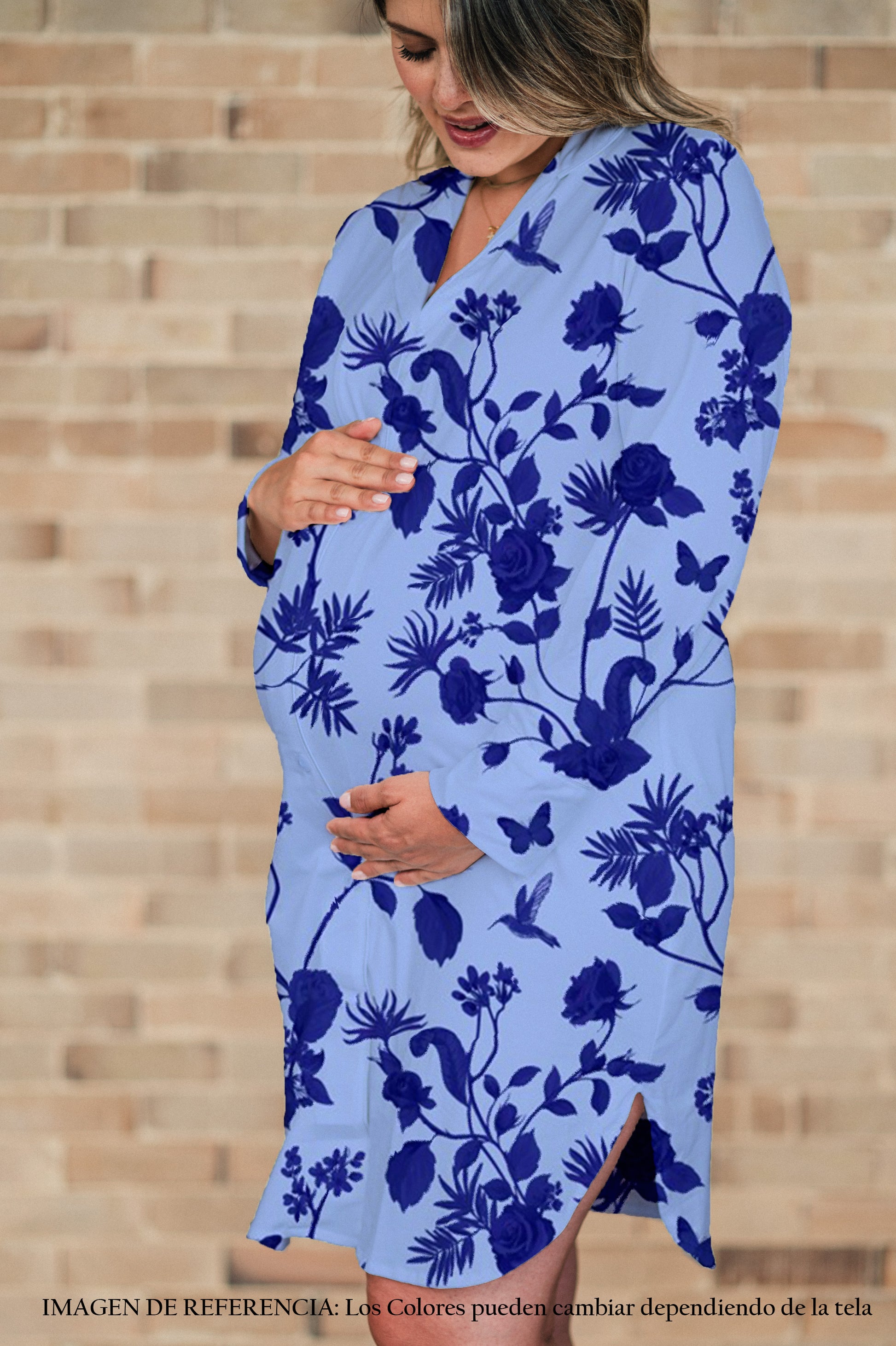 Déjate envolver por la suavidad y elegancia de nuestro camisón maternidad mujer Rosal Celeste, diseñado para brindarte comodidad, estilo y tranquilidad en cada etapa de tu maternidad.