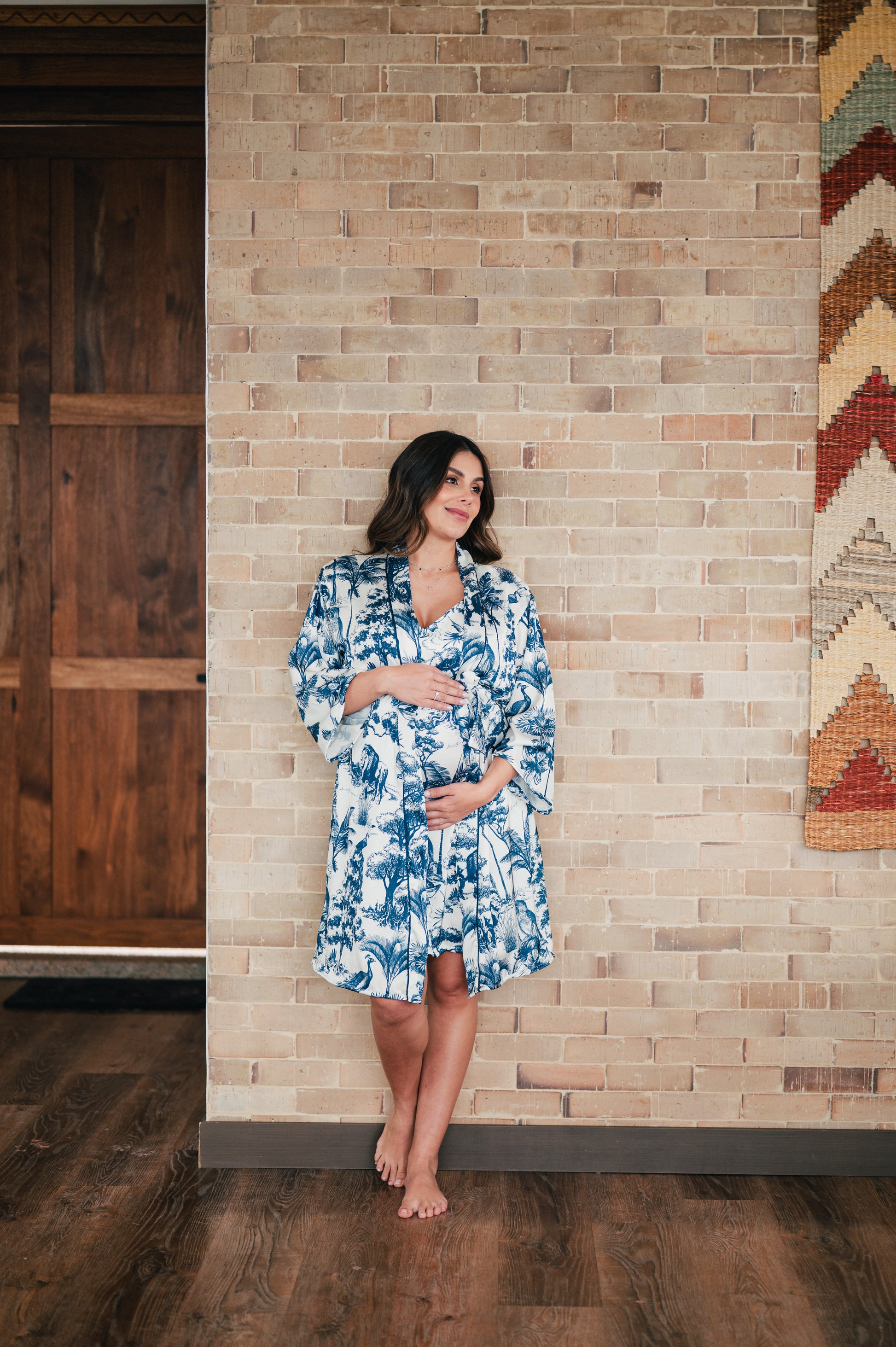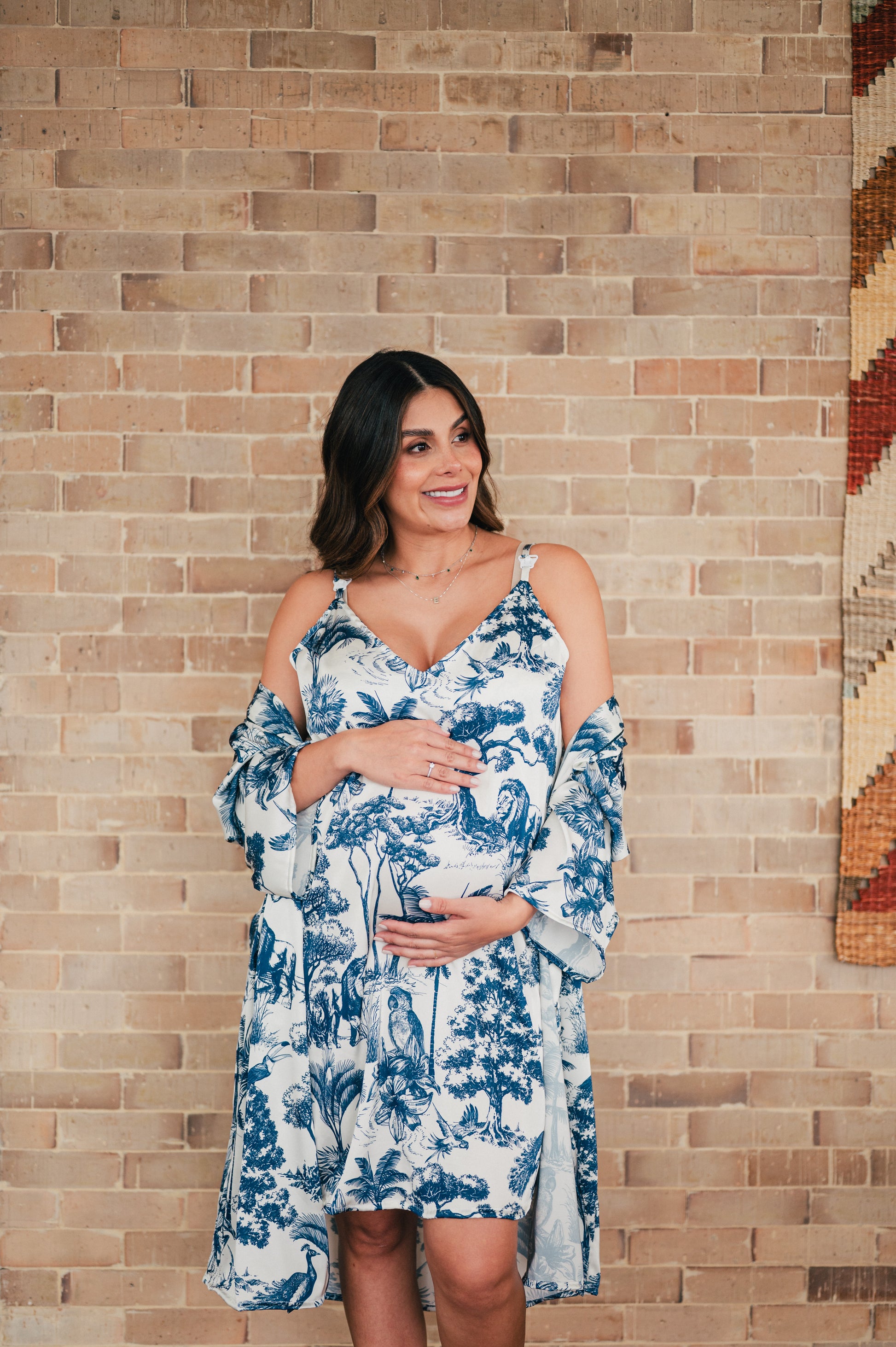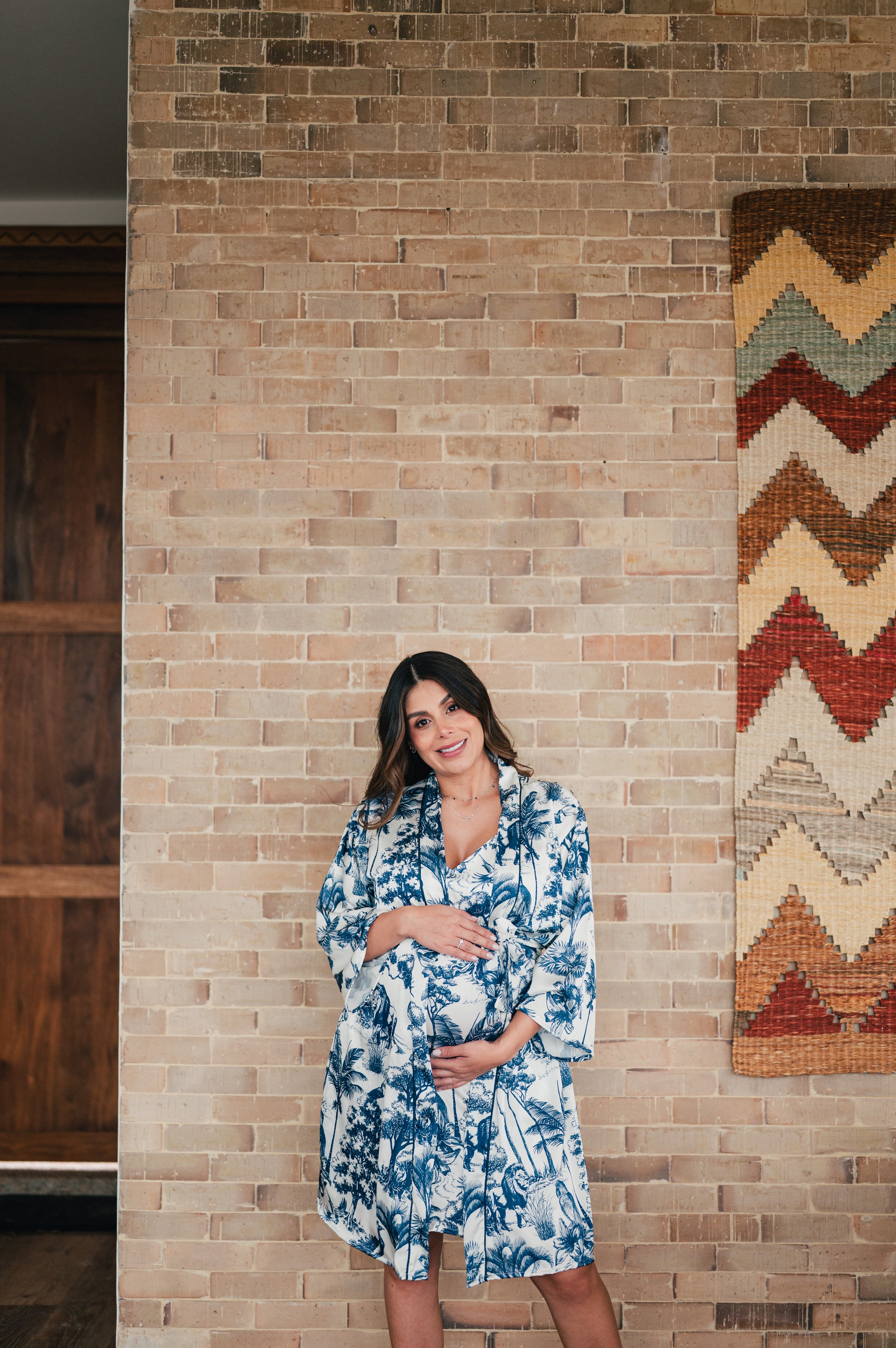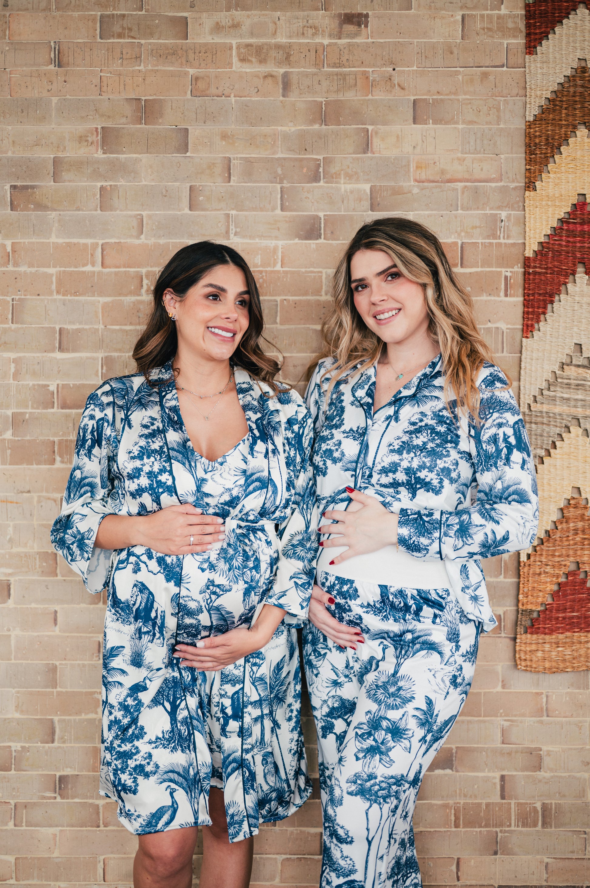 Combina comodidad y estilo con este kimono y bata en Selva Africana Azul, diseñados especialmente para mamás que valoran la elegancia sin renunciar a la funcionalidad. Su broche para lactancia facilita el contacto con tu bebé, mientras que su caída ligera y tacto suave te envuelven con delicadeza en cada etapa. Ideal para estar en casa o recibir visitas, te brinda confianza y frescura en todo momento.