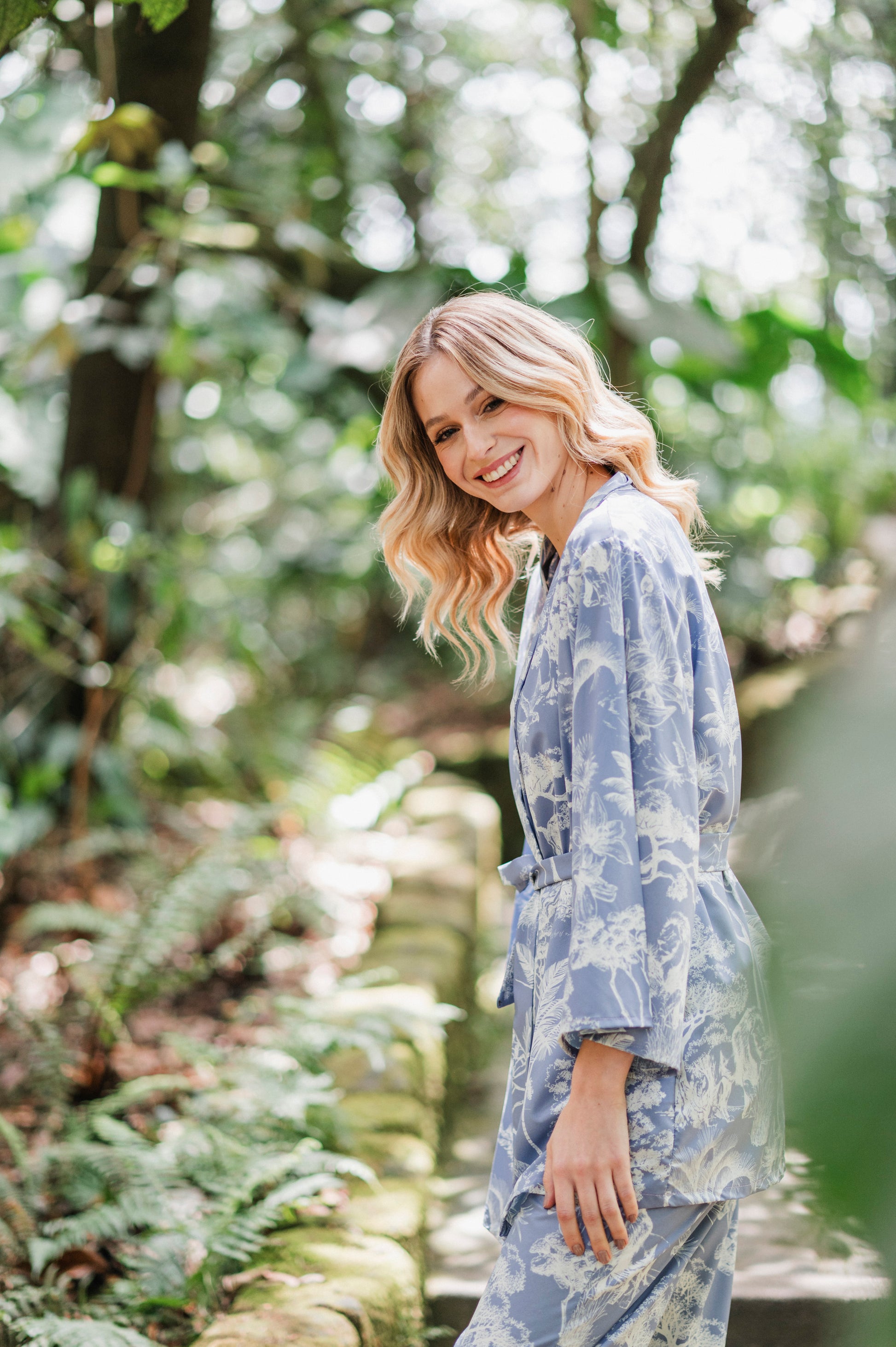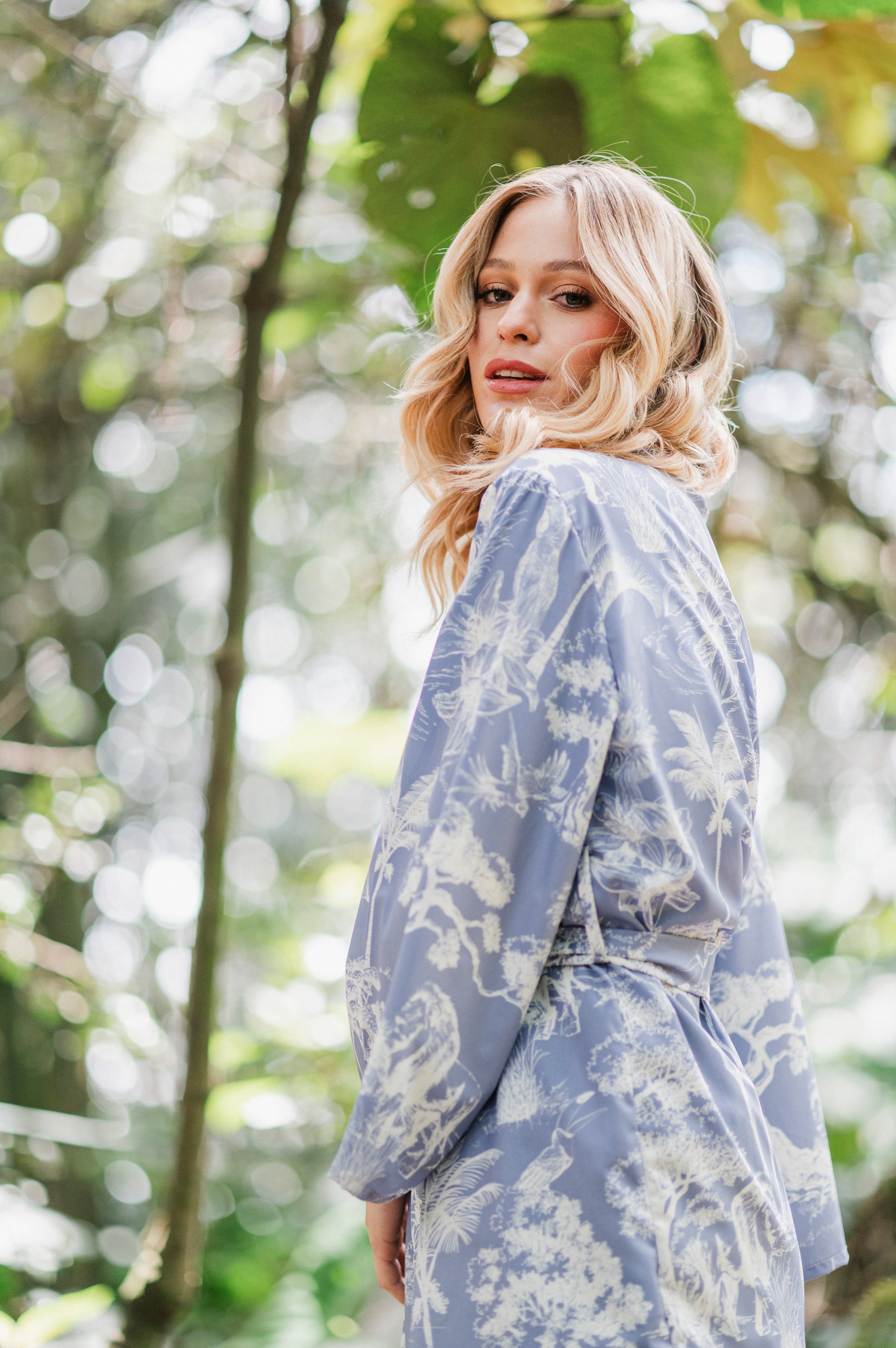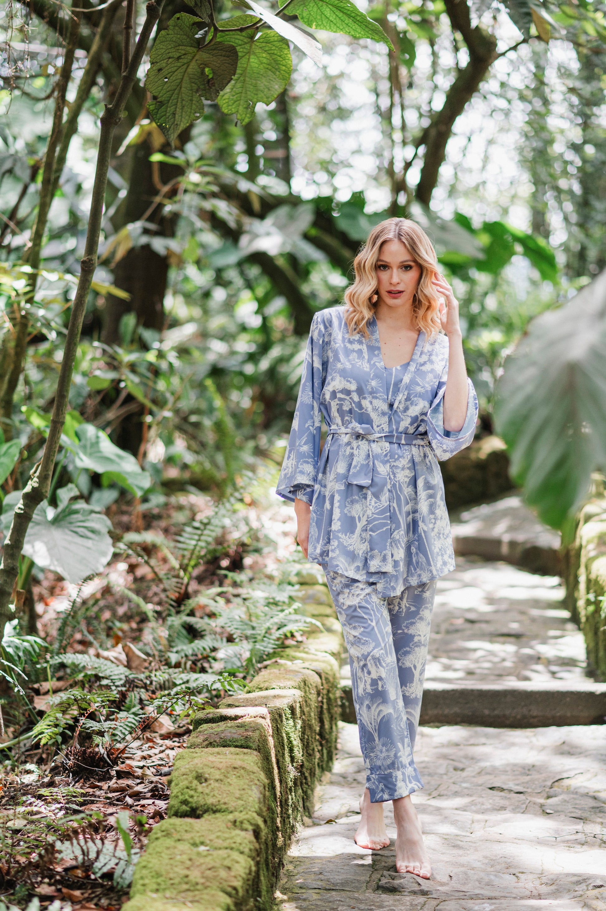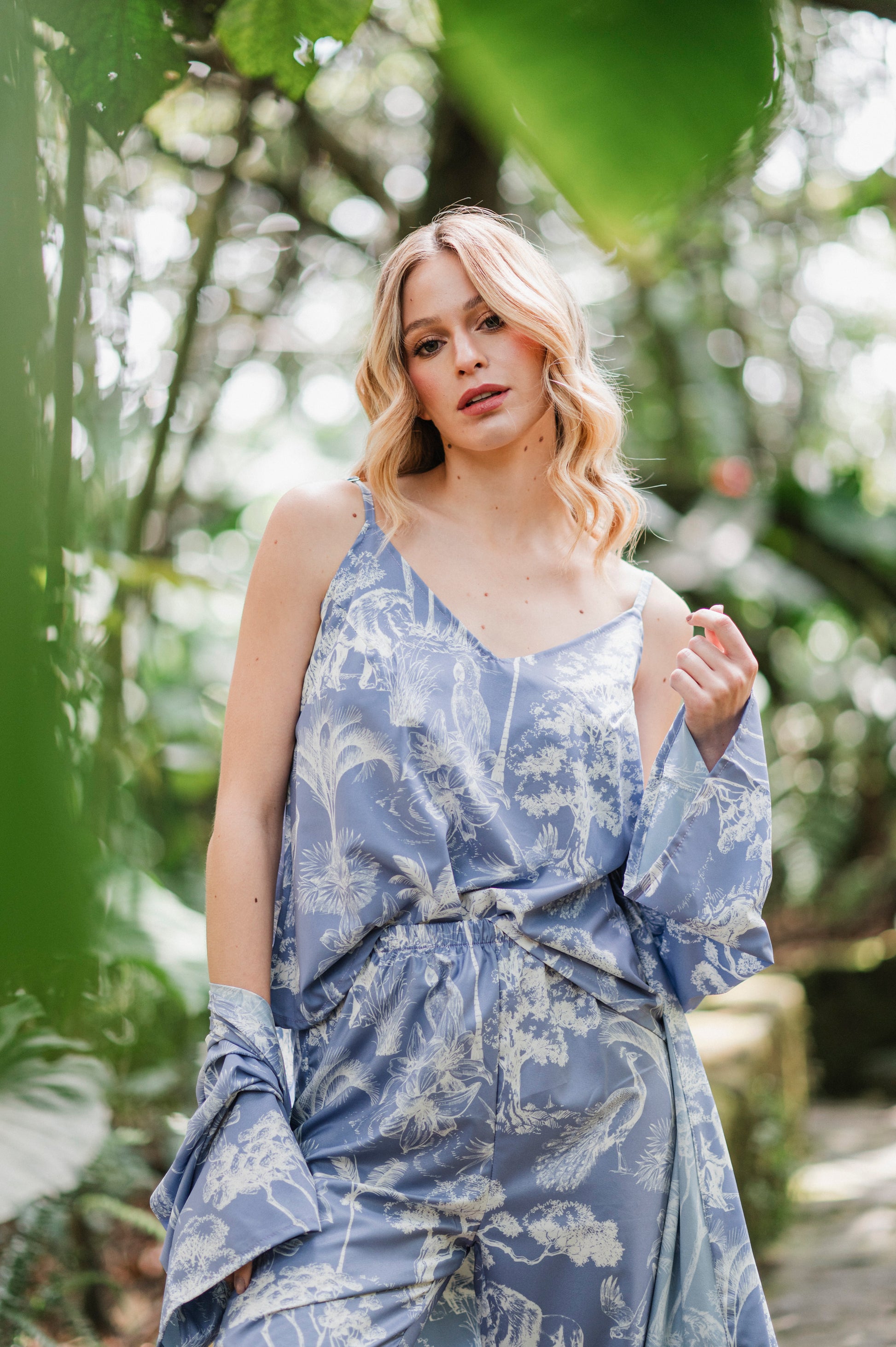 Exótica, fresca y llena de vida, esta pijama de tres piezas en el print Selva Africana Celeste te transporta directo a un paraíso natural lleno de color y armonía. Compuesta por una levantadora fluida, una blusa de tiras ligera y un pantalón cómodo, este conjunto es ideal para quienes aman descansar con estilo sin renunciar al confort. El estampado combina tonos suaves con ilustraciones de fauna y vegetación salvaje, creando un look vibrante y relajado que eleva cualquier momento en casa. Perfecta para sentirte libre, cómoda y espectacular desde que amanece hasta que cierras los ojos.