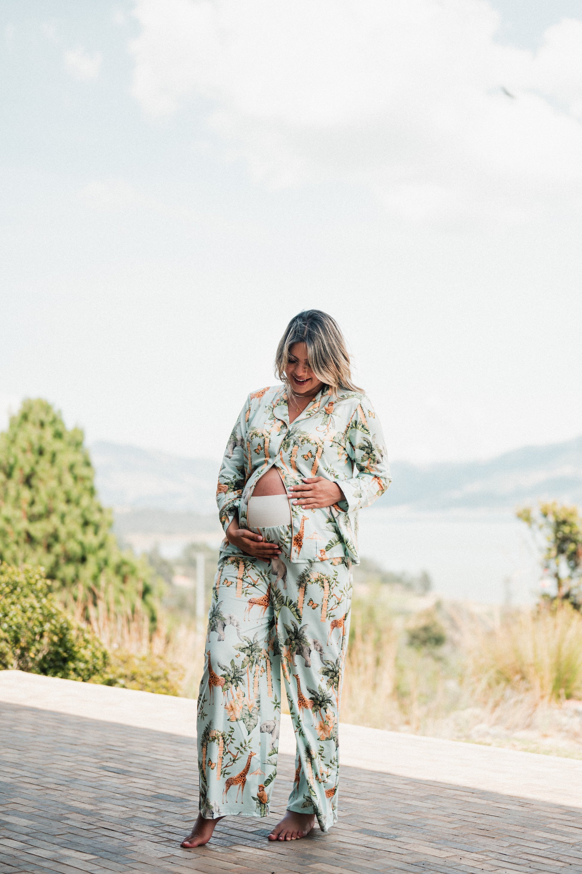 Exótica, cómoda y con un estilo que transmite calma, nuestra pijama de maternidad Selva Hindú Azul – Camisa Manga Larga y Pantalón Ancho está pensada para acompañarte con suavidad y libertad durante cada etapa del embarazo. Su estampado inspirado en la naturaleza y la cultura hindú, en tonos azules profundos, crea una atmósfera de serenidad ideal para tus momentos de descanso.