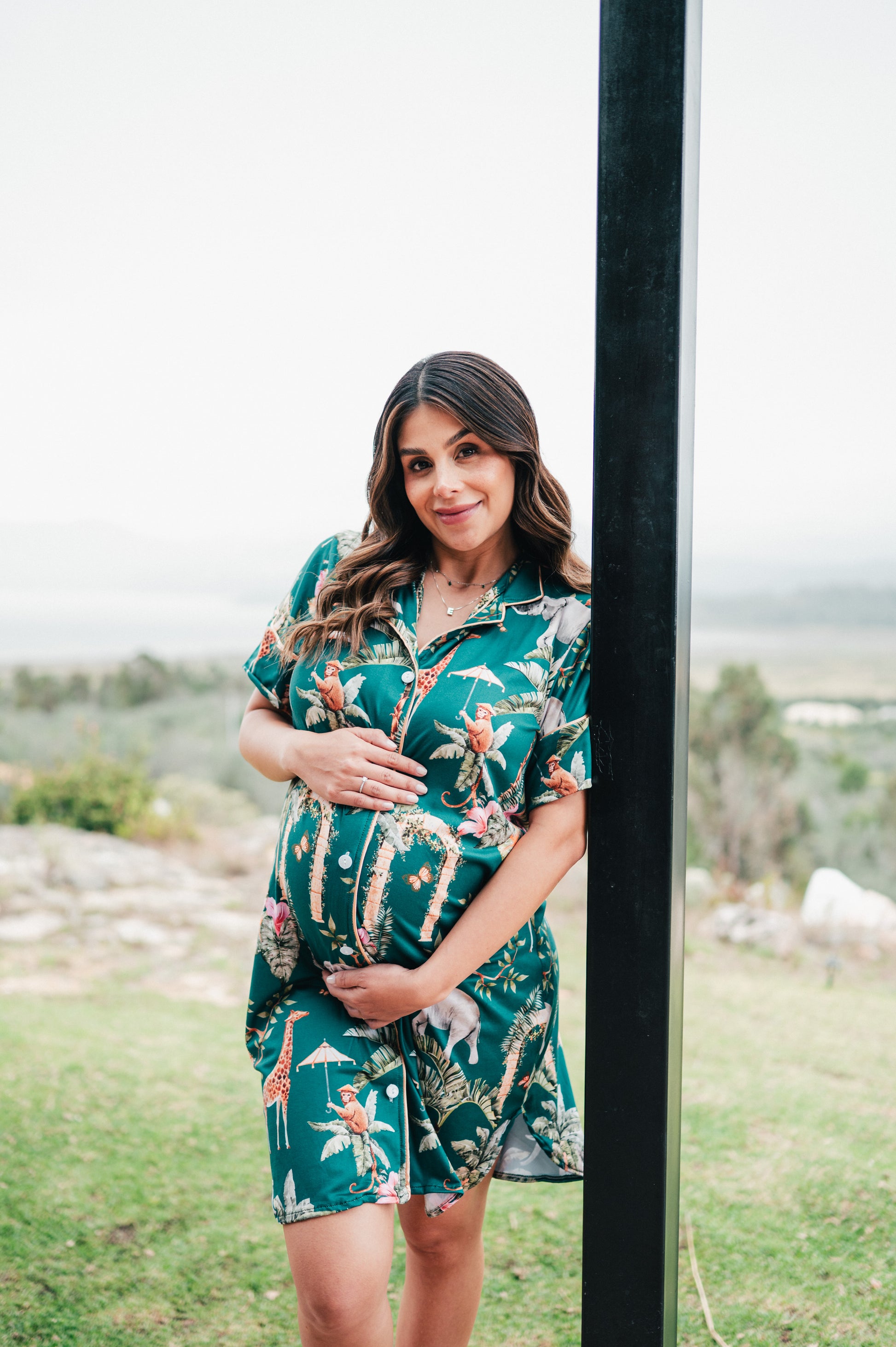 Sumérgete en la serenidad y el exotismo con el camisón de maternidad Selva Hindu Jade, una pieza esencial para tu guardarropa durante esta etapa tan especial. Su diseño de manga larga y estampado inspirado en la naturaleza tropical te envuelve en una sensación de calma y sofisticación, mientras que su tejido premium brinda suavidad, calidez y un ajuste ideal para el cuerpo cambiante de la maternidad.