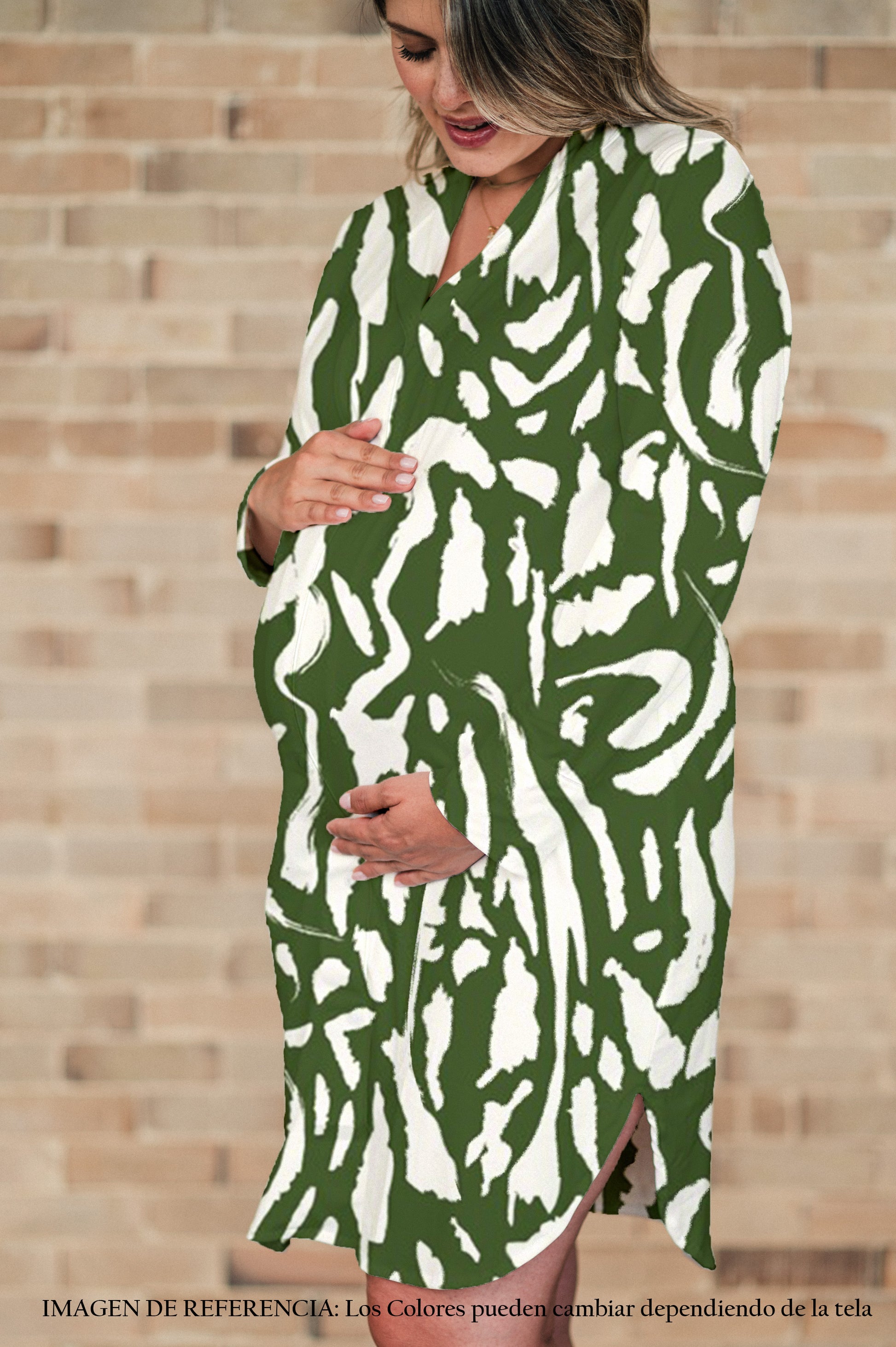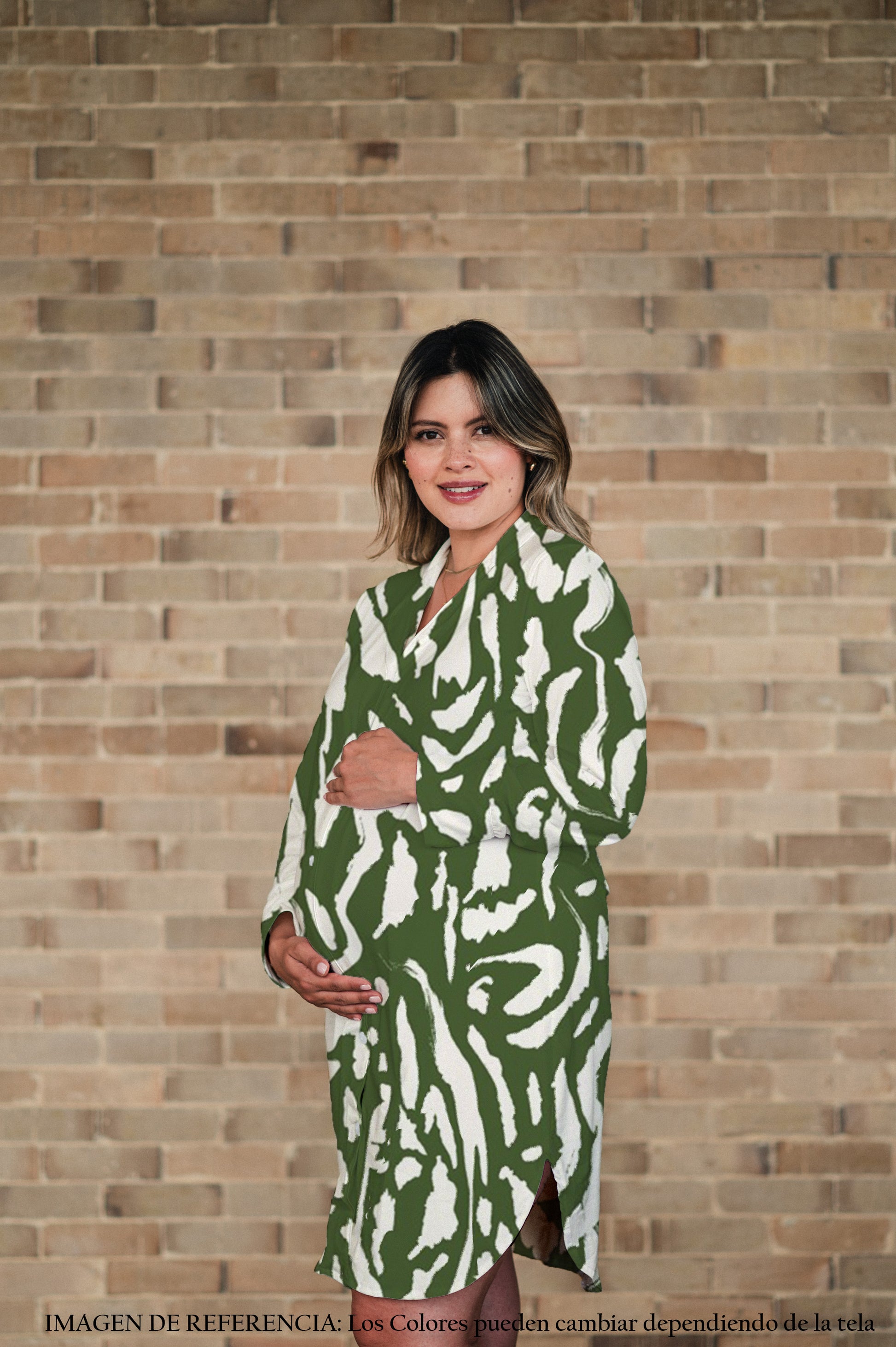 Siente la armonía del verde con el camisón “Trazos en Verde”, diseñado para brindarte comodidad y libertad de movimiento durante el embarazo. Su tela suave y elástica se adapta a tu cuerpo, mientras que su estampado moderno y elegante te ofrece un estilo único sin renunciar al confort en cada etapa de la dulce espera.
